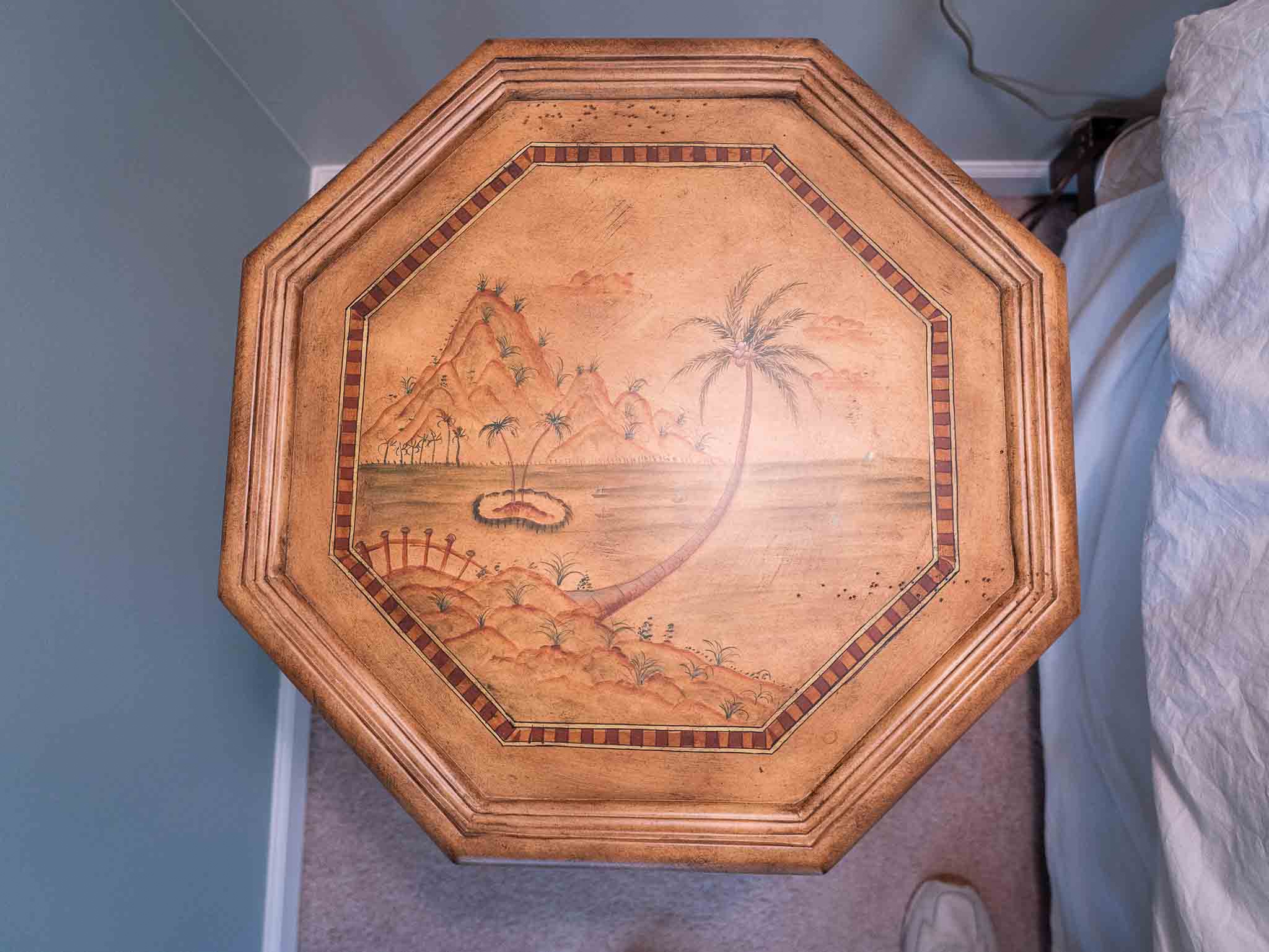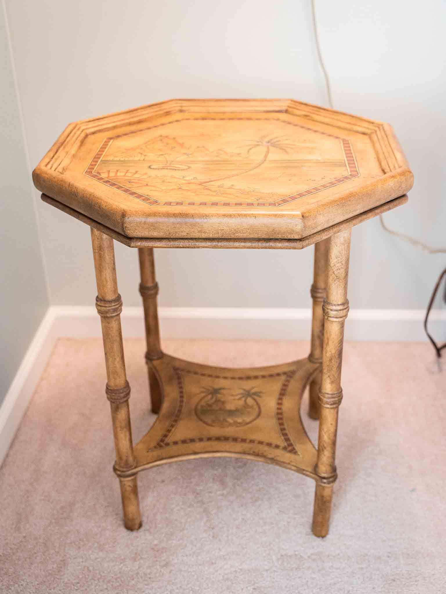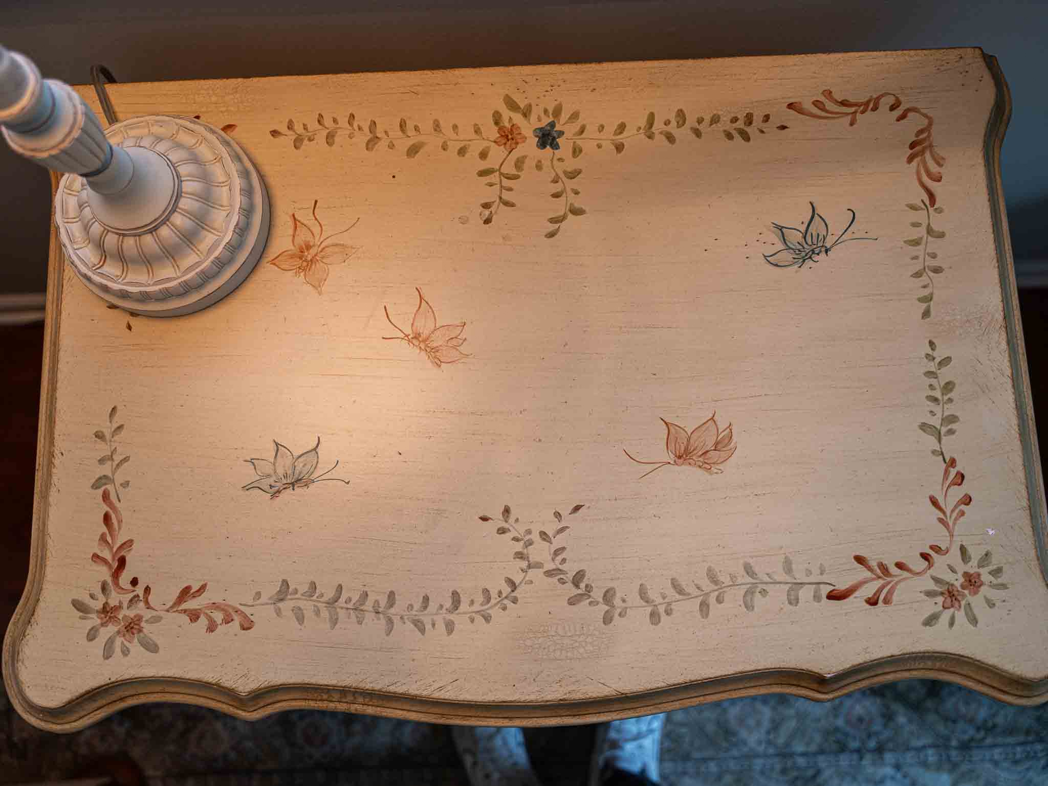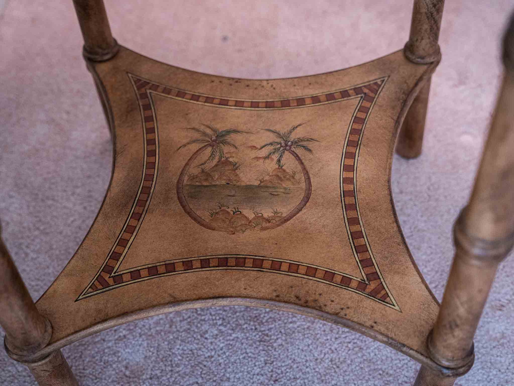 - Bombay Company side tables and hand-painted pieces