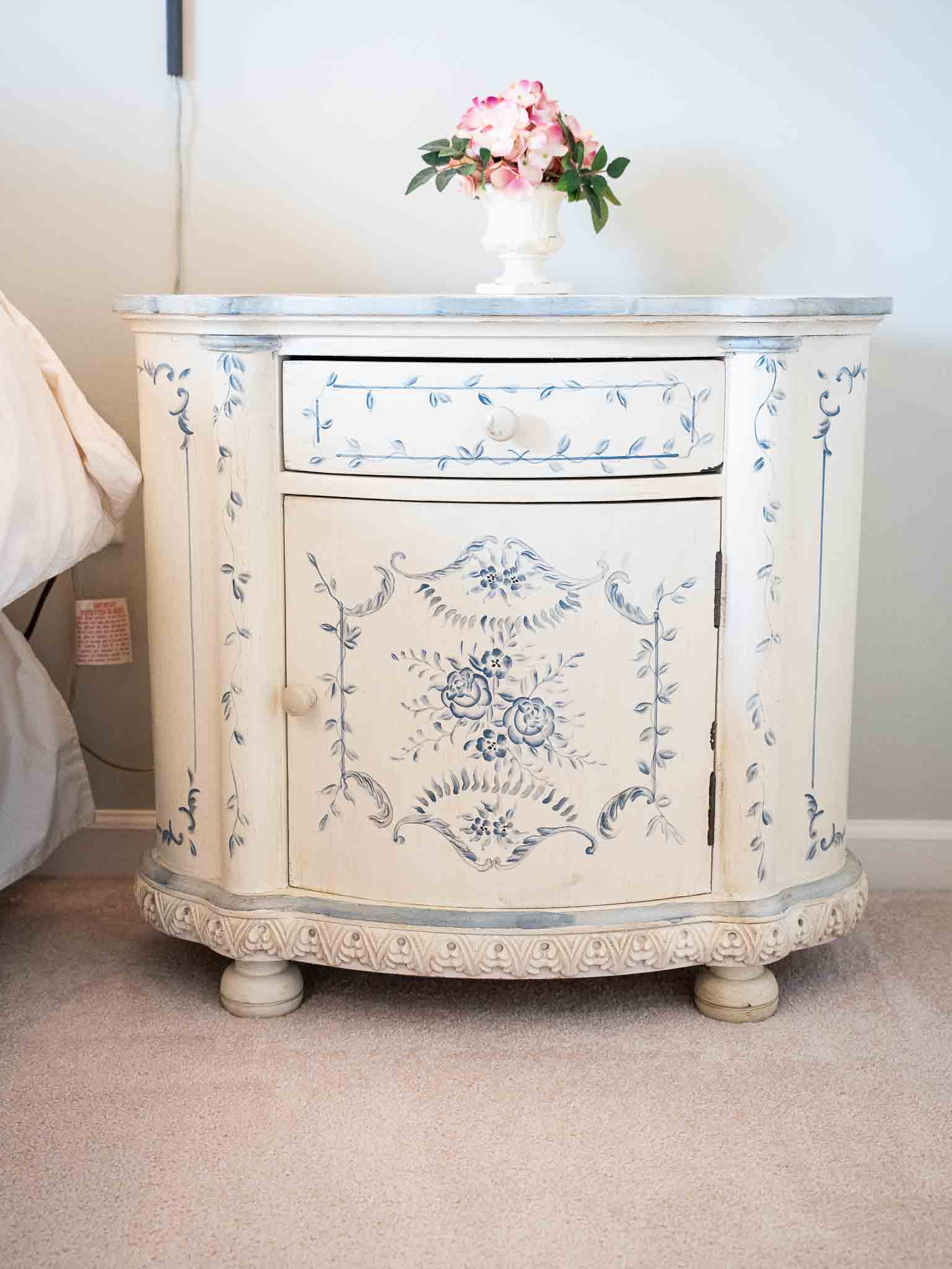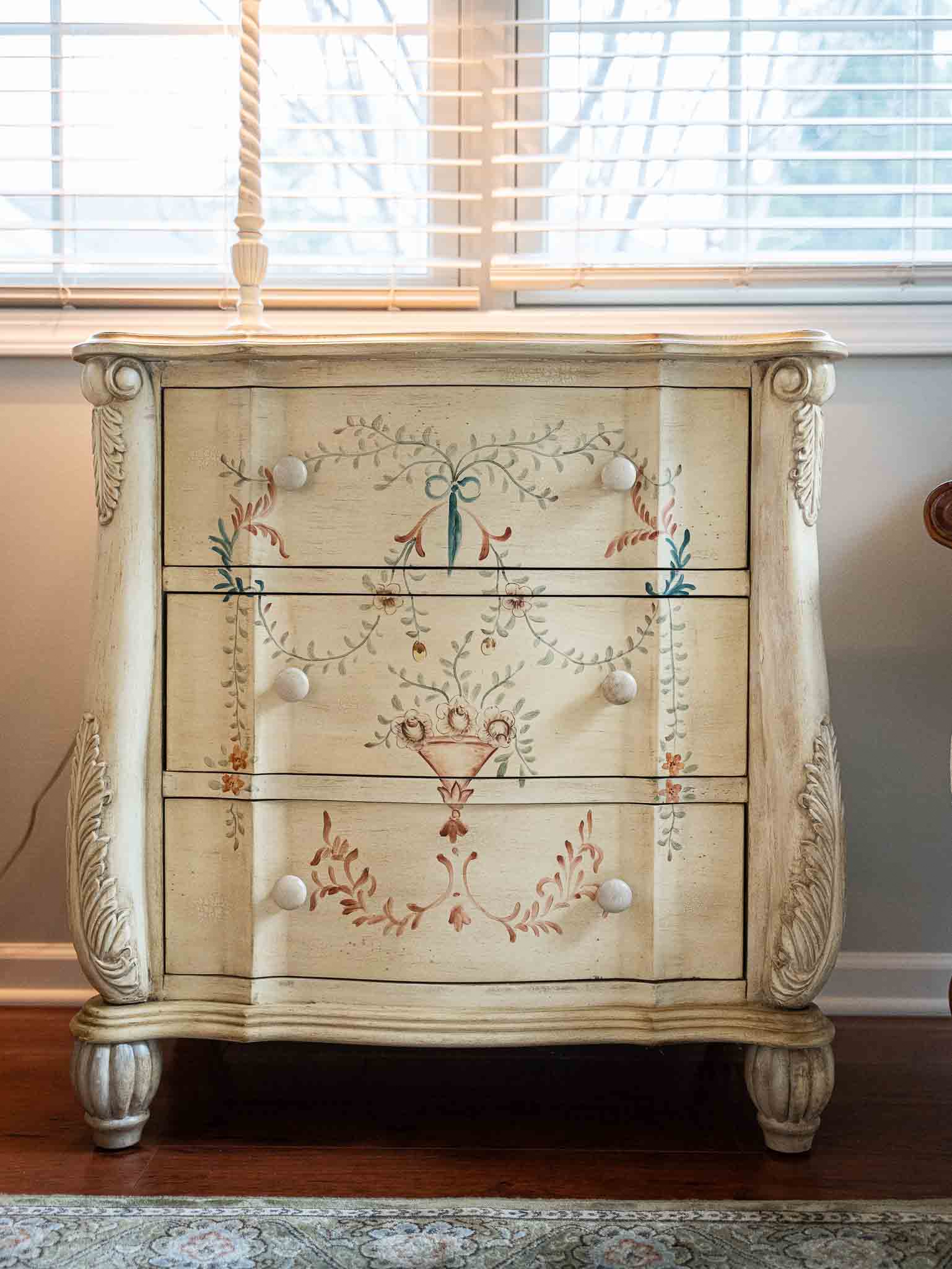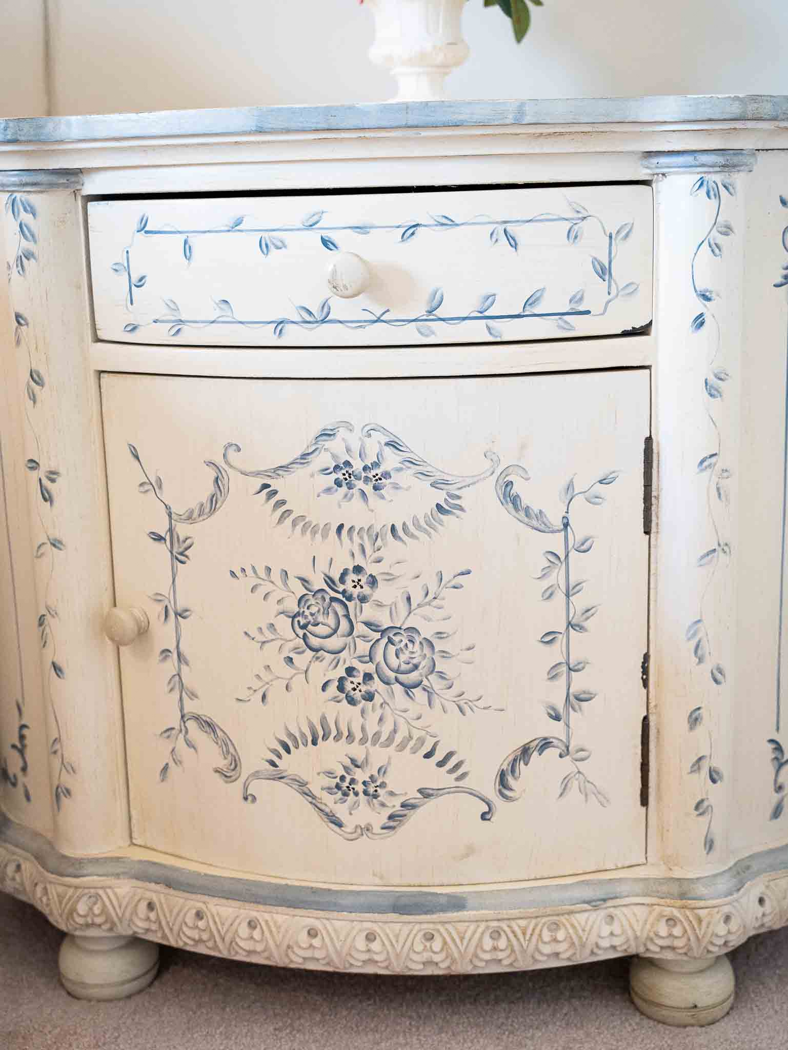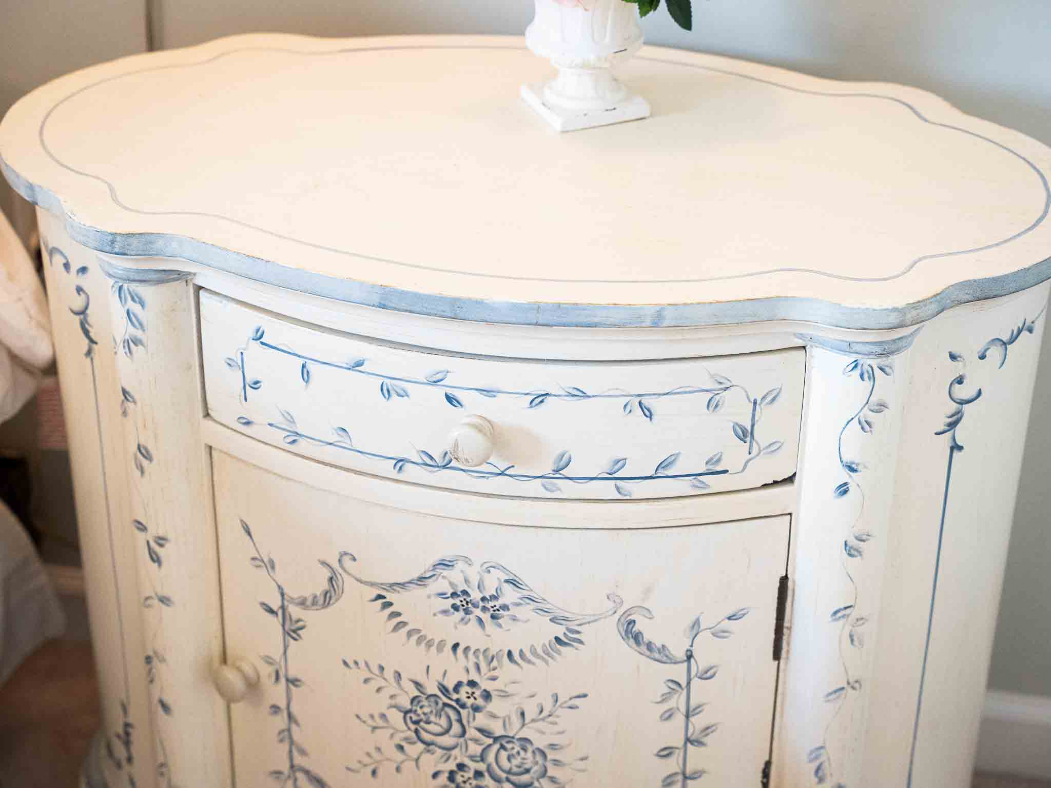 - Bombay Company side tables and hand-painted pieces
