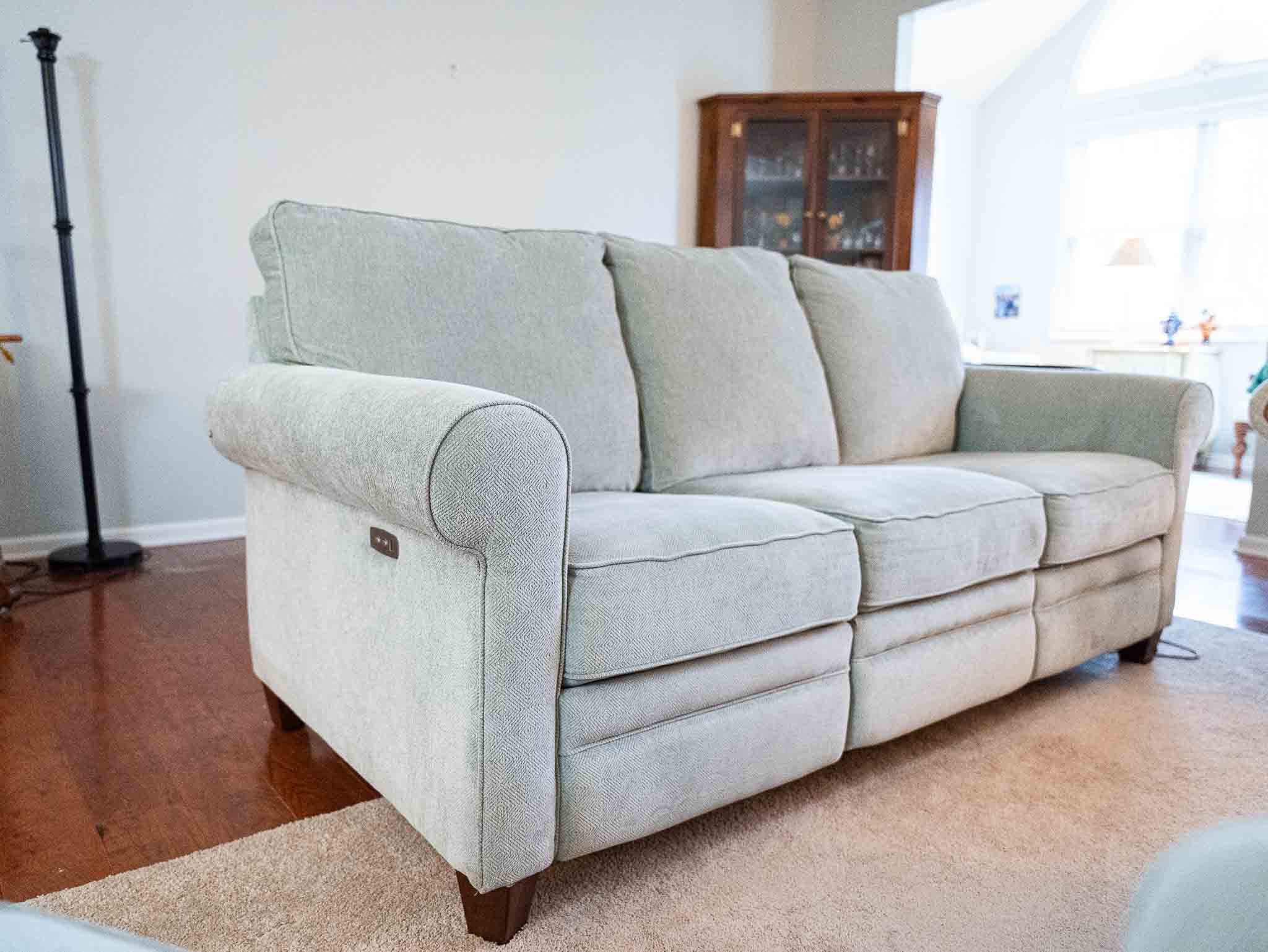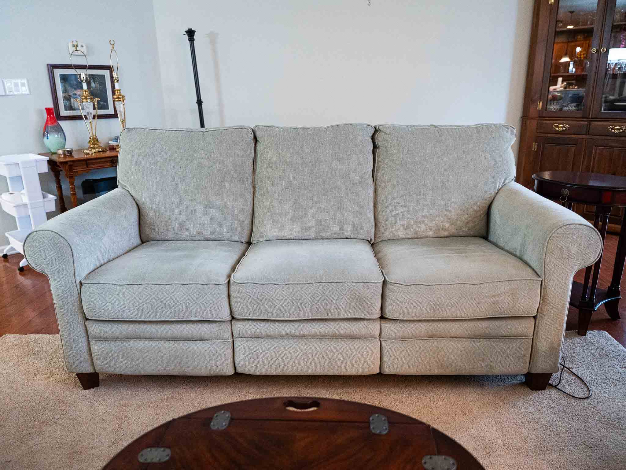 - La-Z-Boy reclining sofa and matching swivel rocker chair