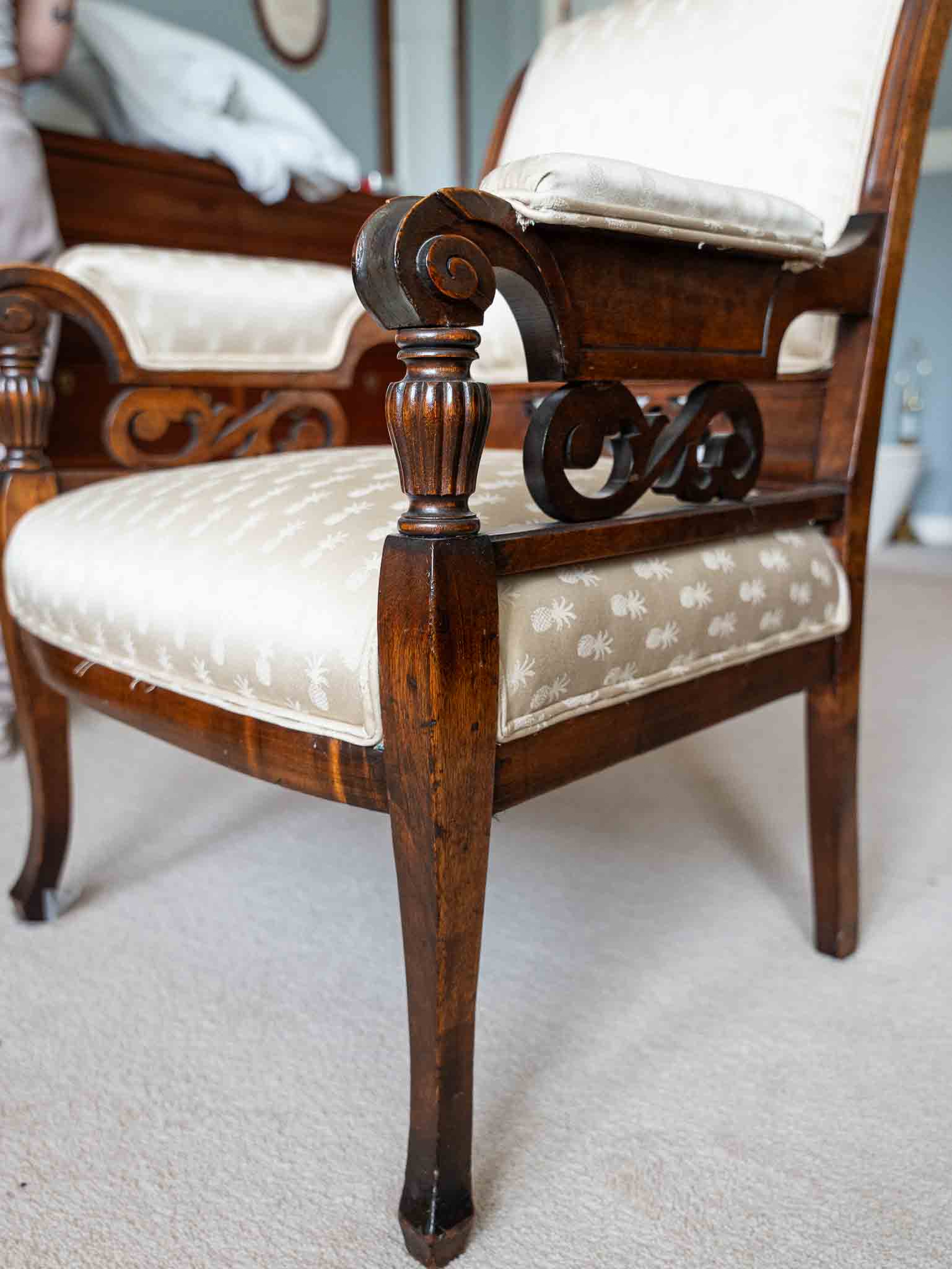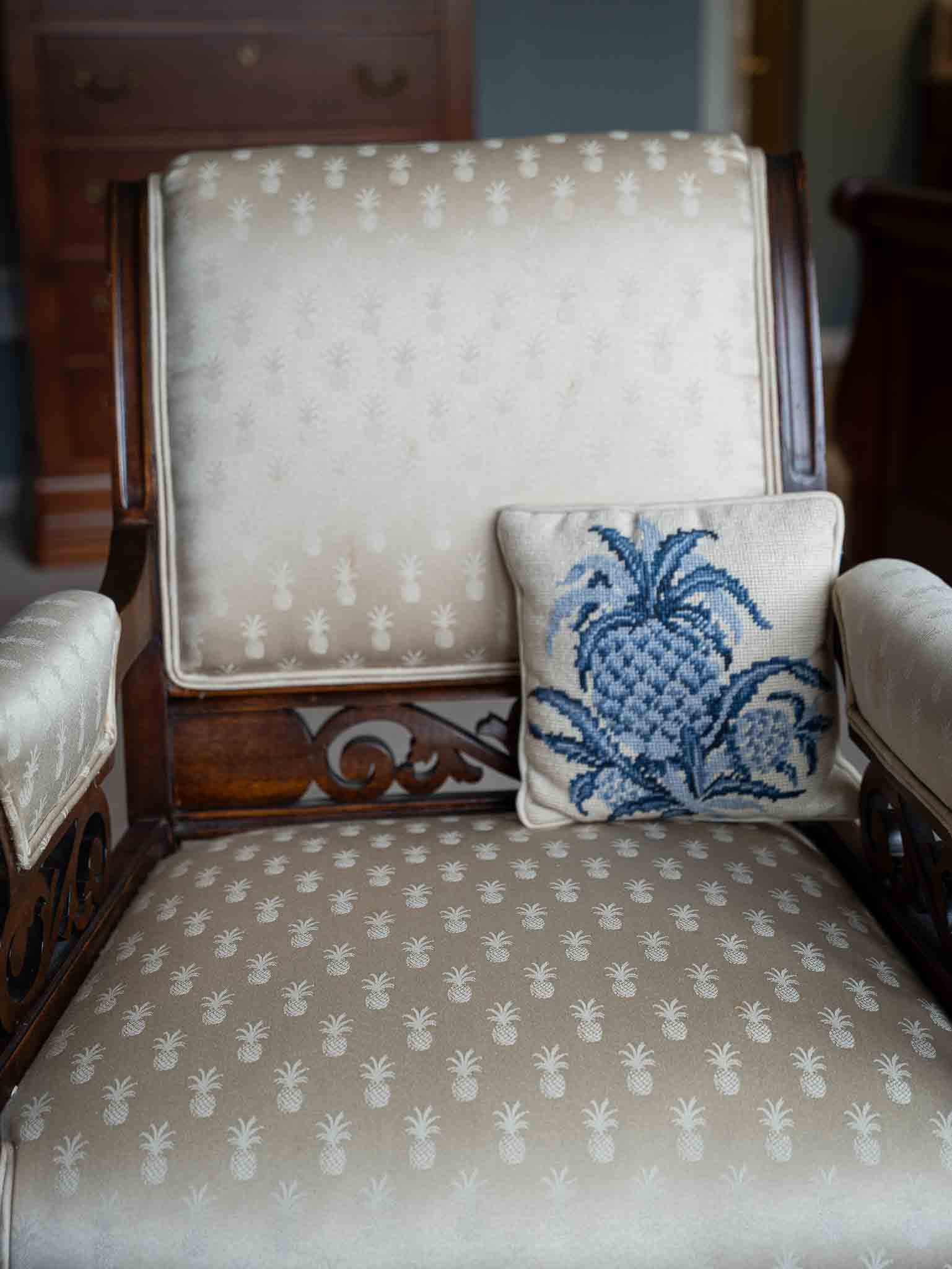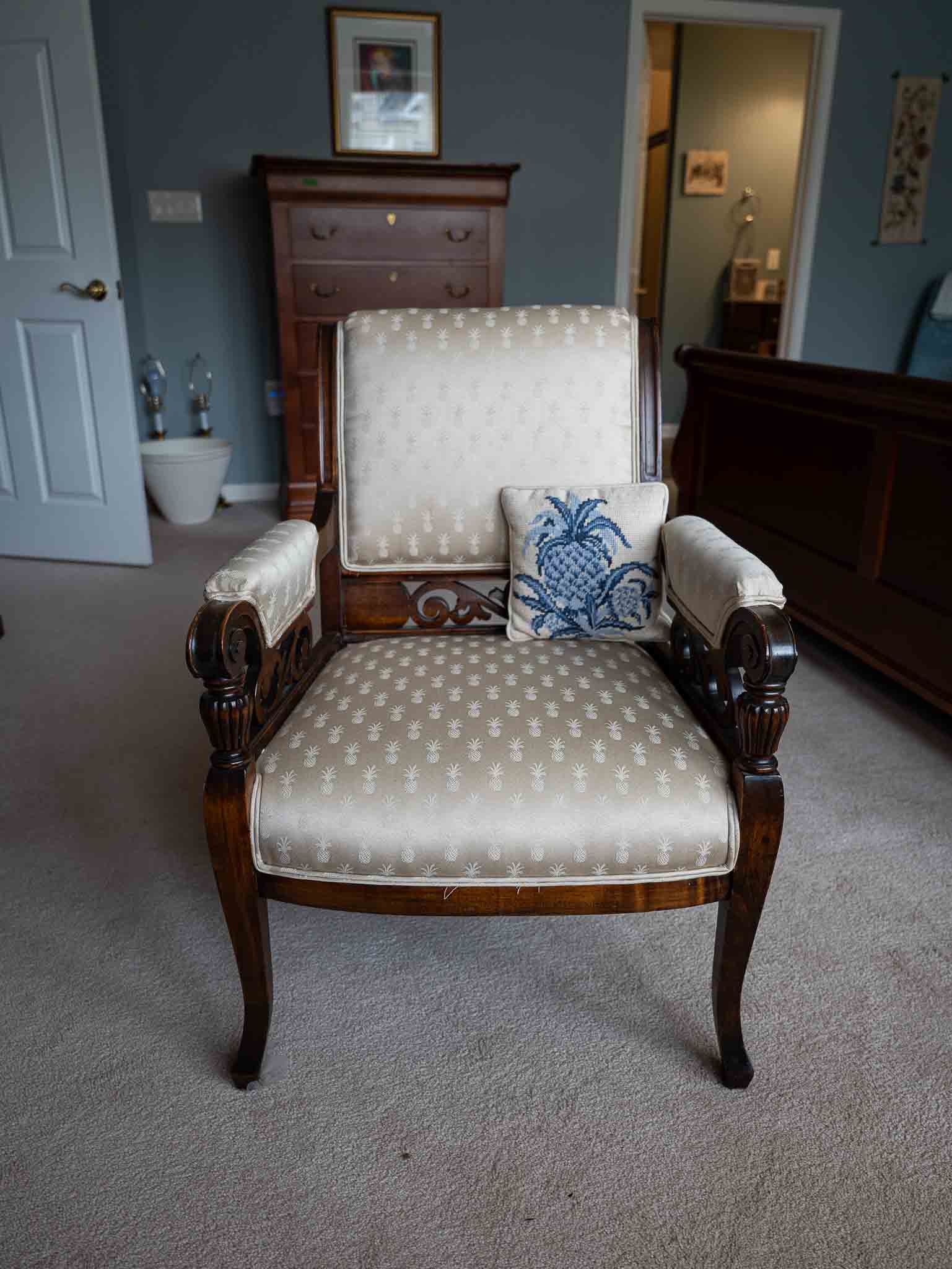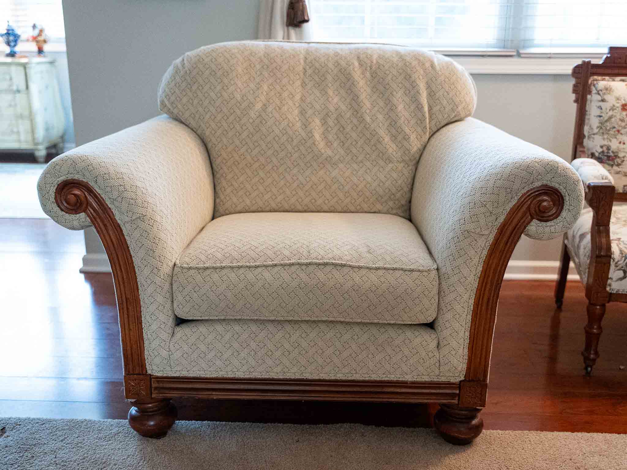 - Multiple accent chairs (Bombay, Clayton House, French Louis style, vintage carved)