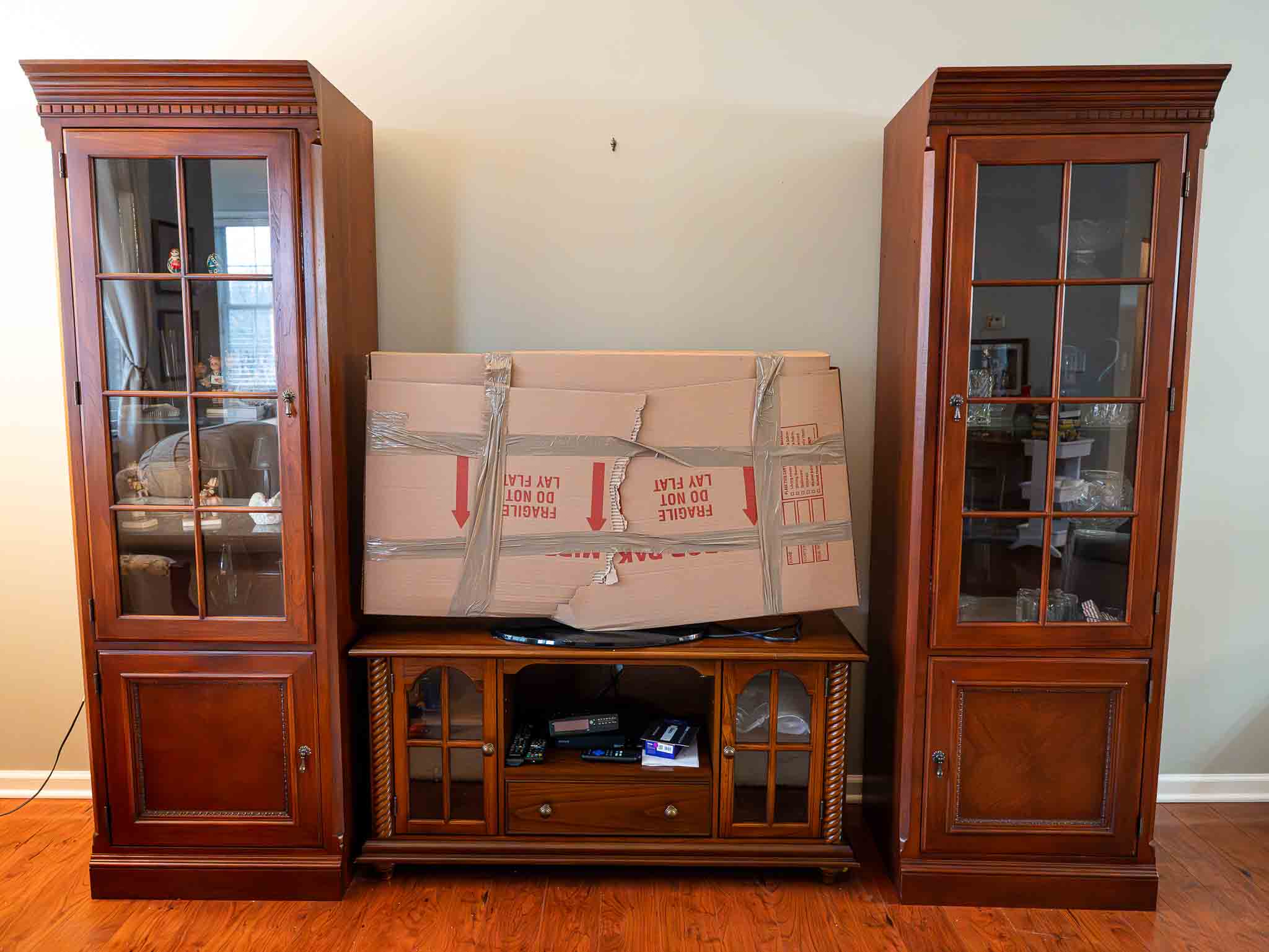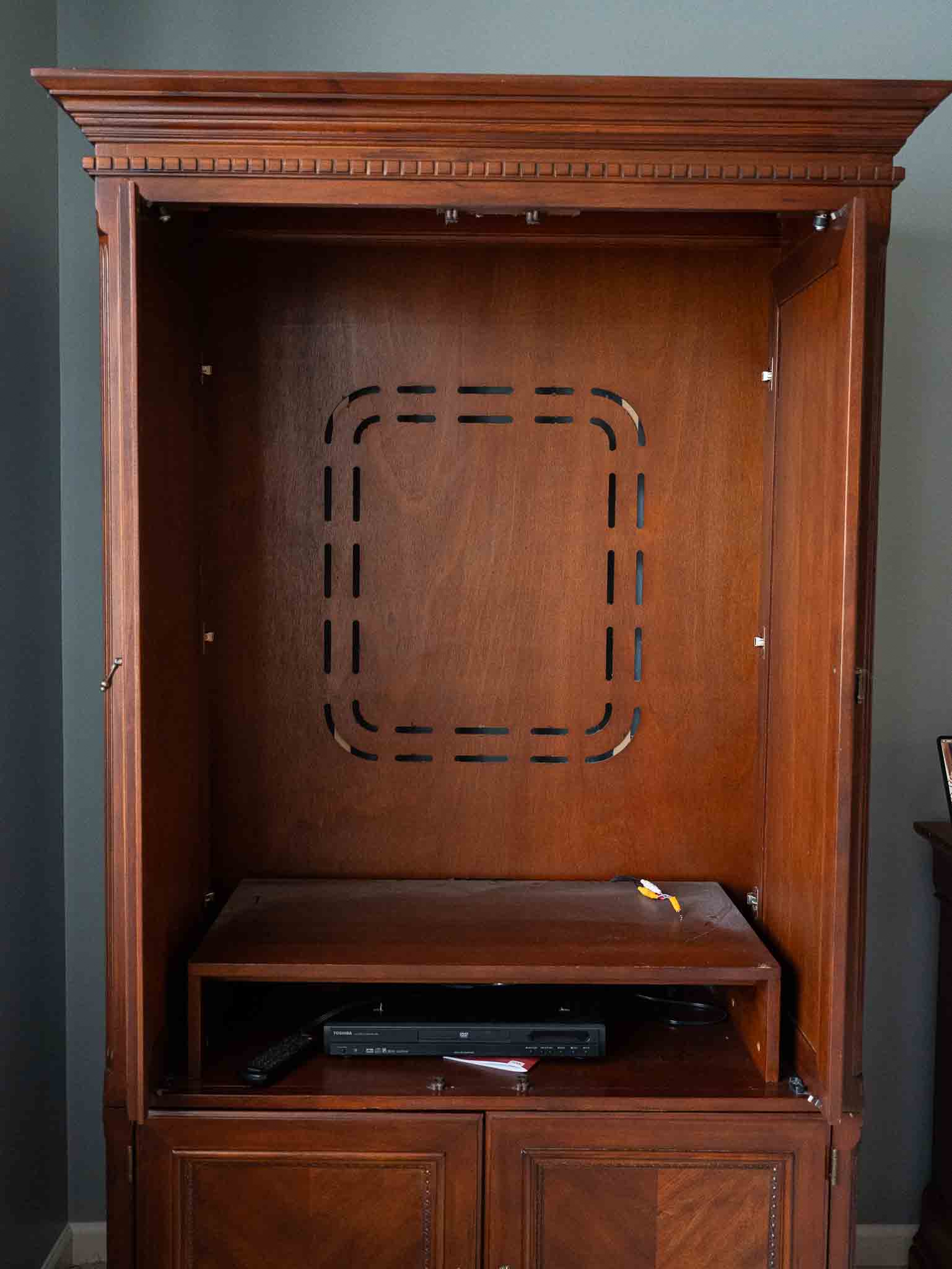 - Large solid wood TV armoire