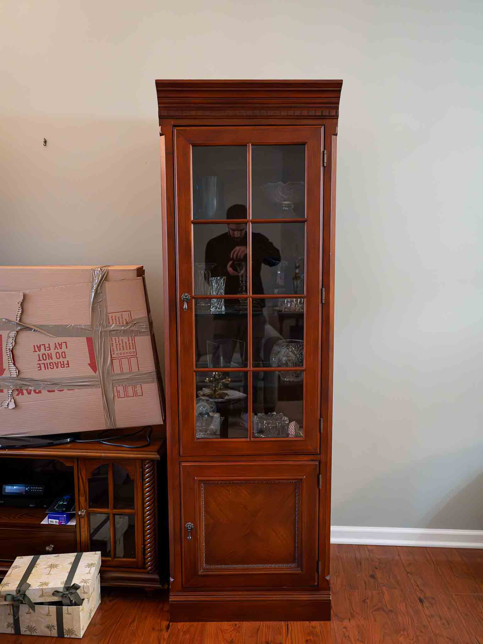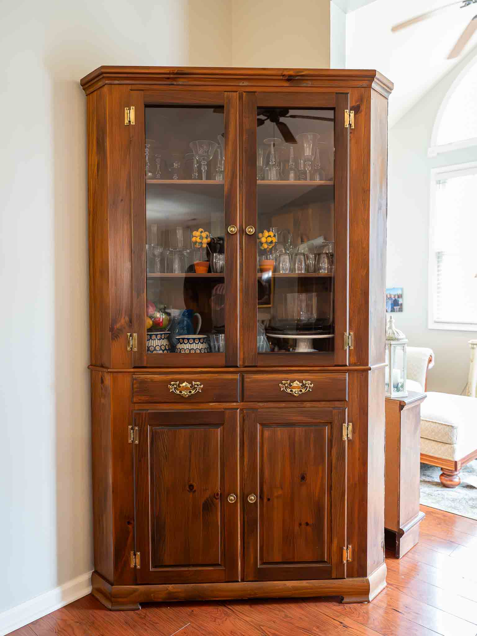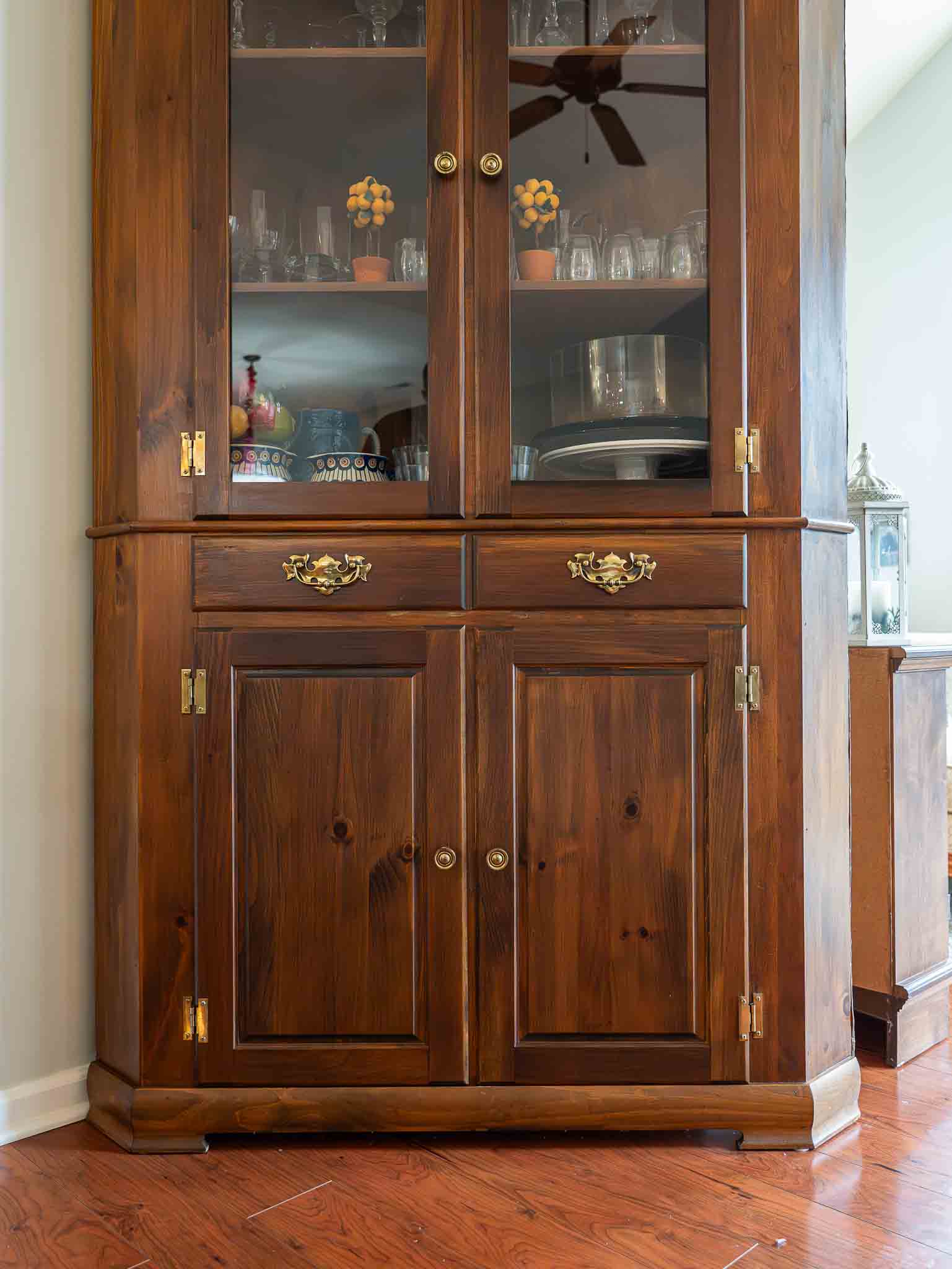 - Large solid wood corner china cabinet