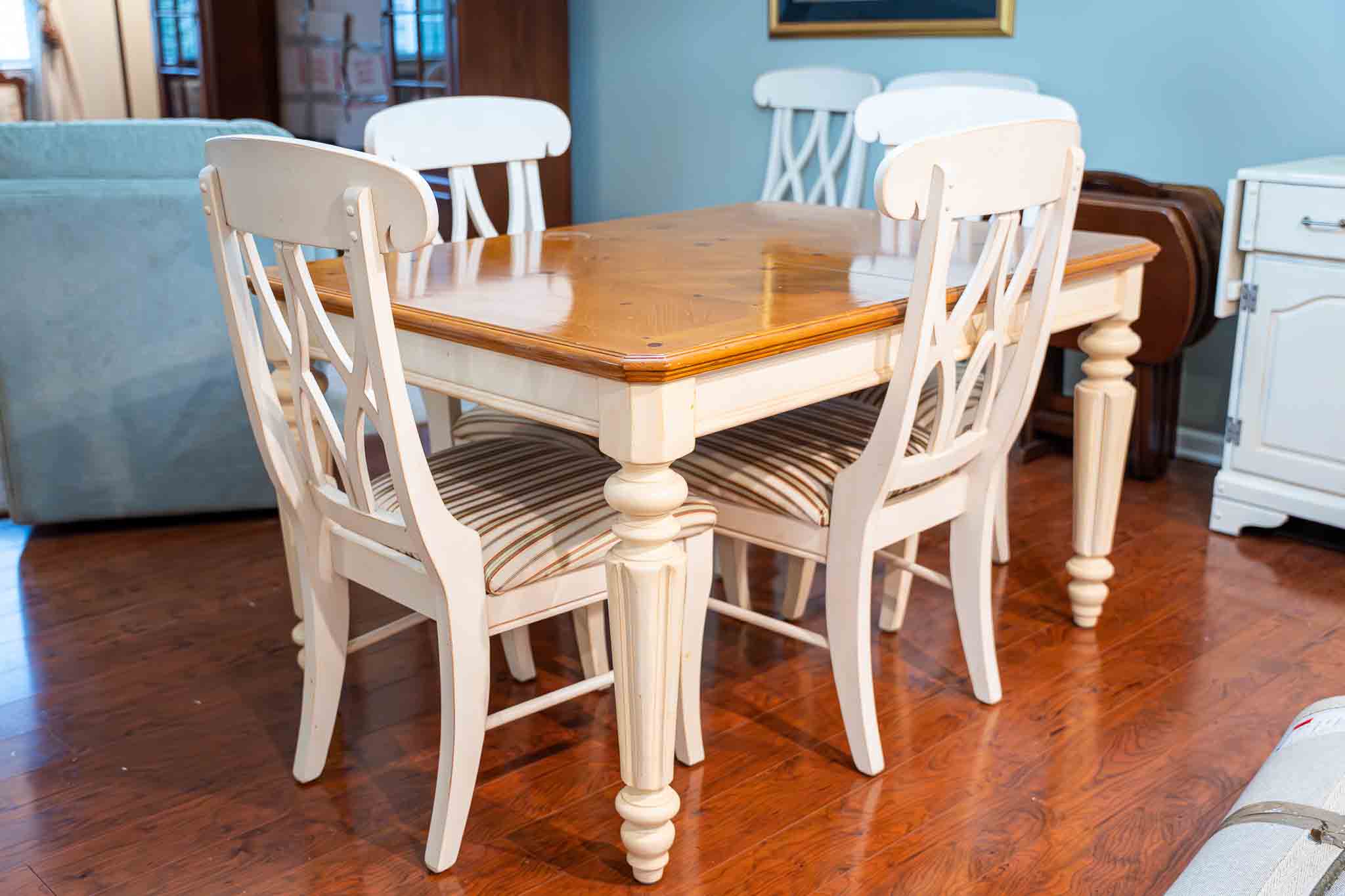 - Farmhouse dining table with 6 chairs