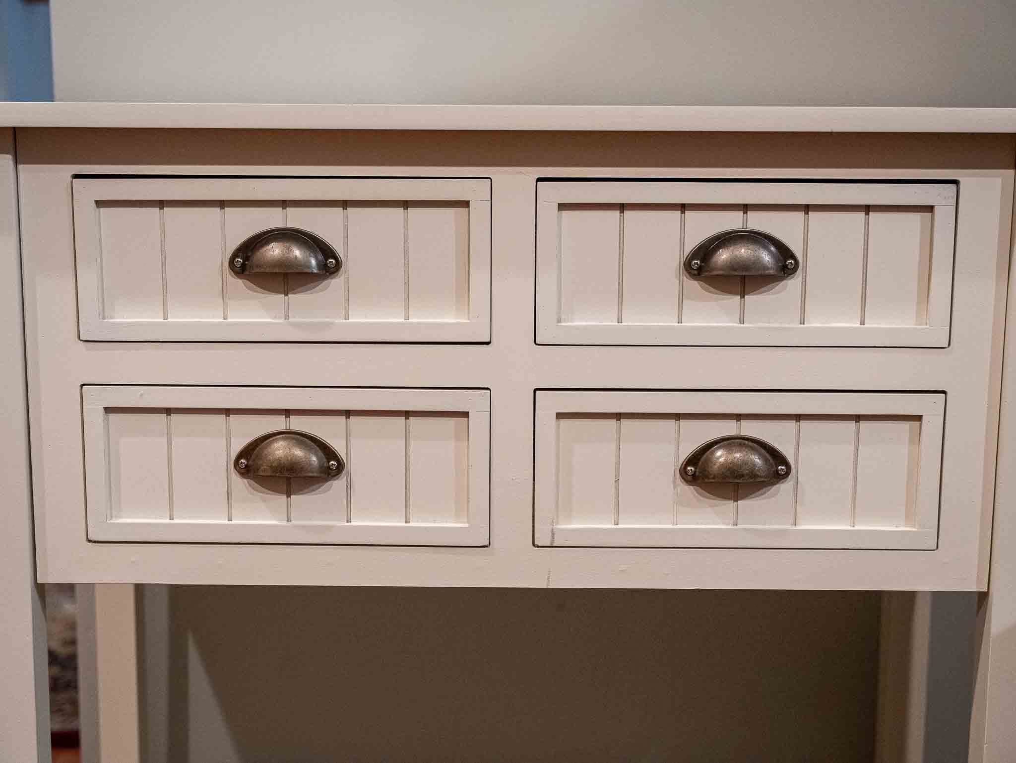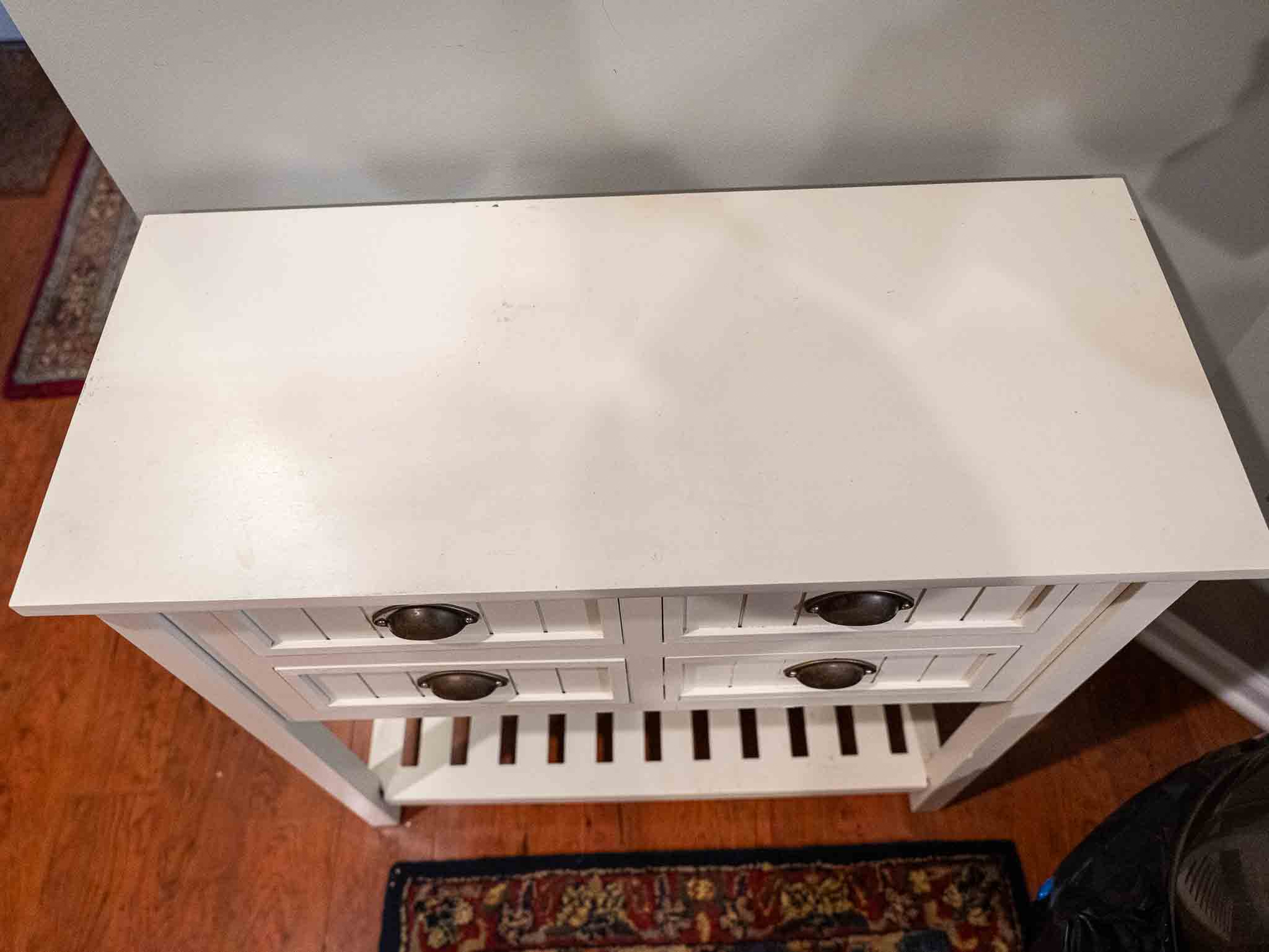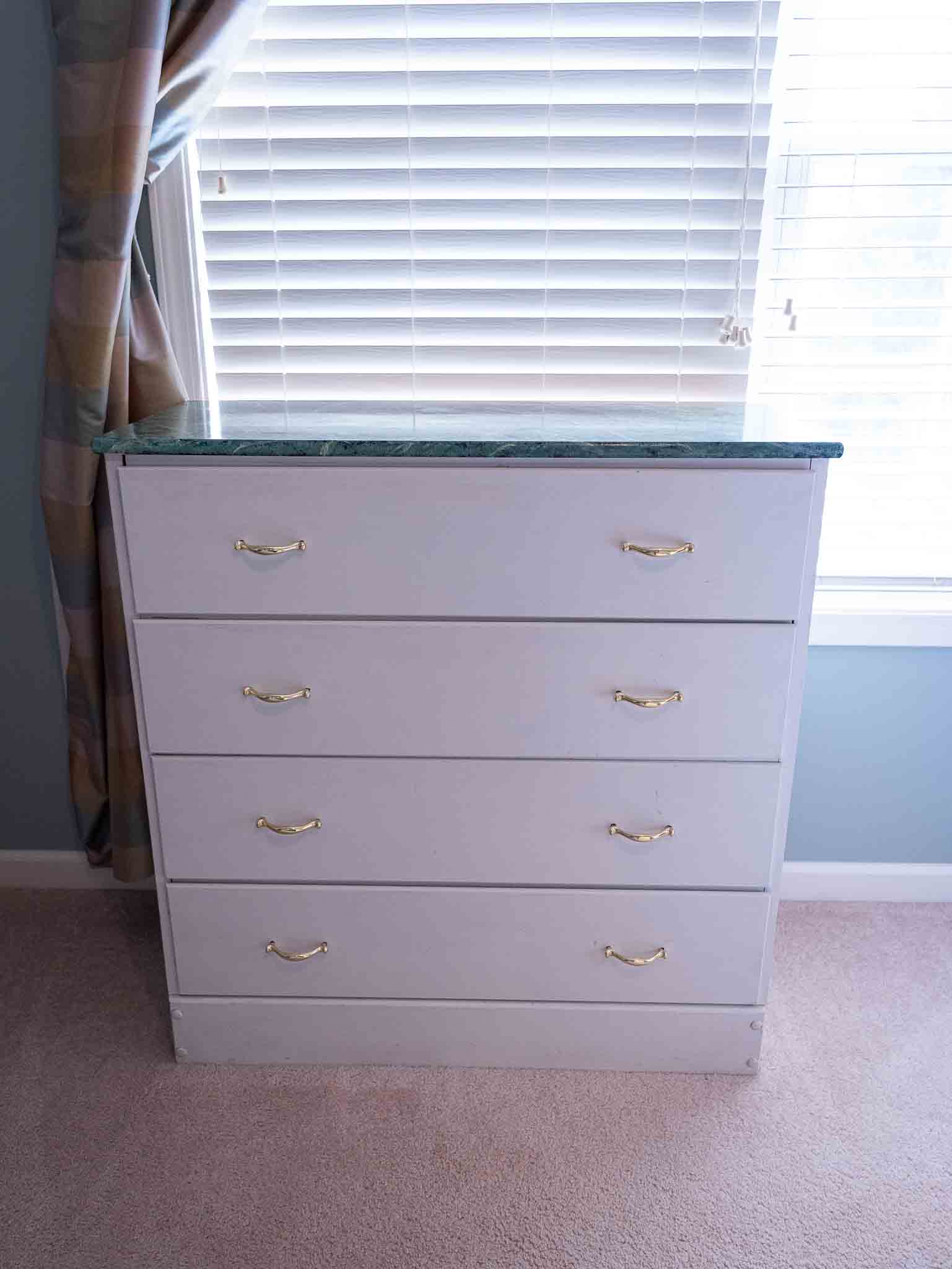 White 4-drawer dresser with marble-style top