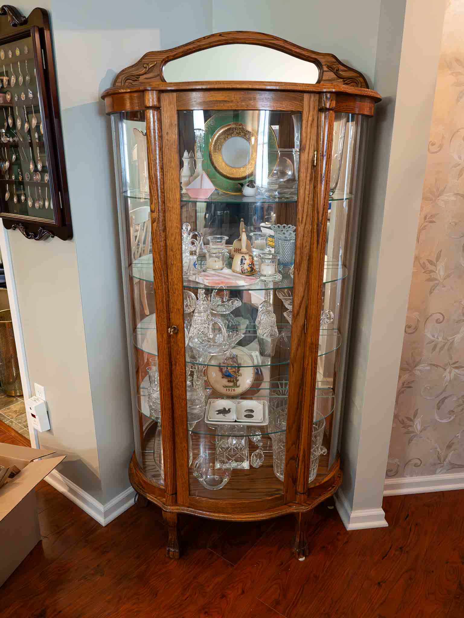 - Curved glass lighted curio cabinet with key