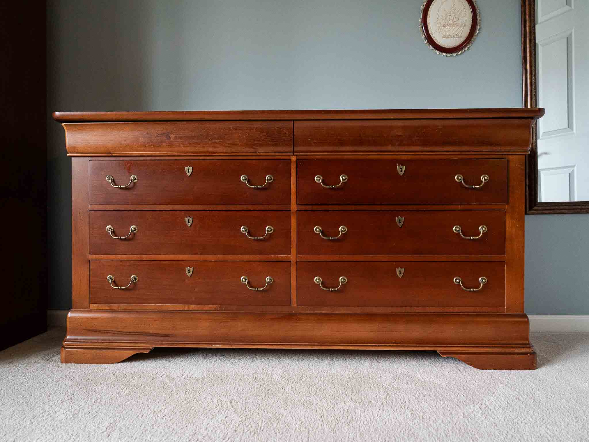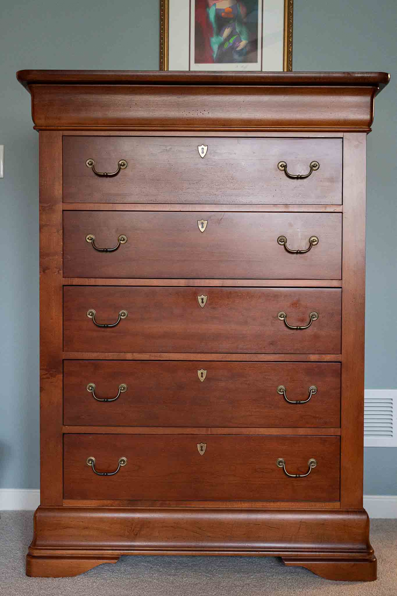 - Full matching bedroom set (dresser, highboy, nightstands)