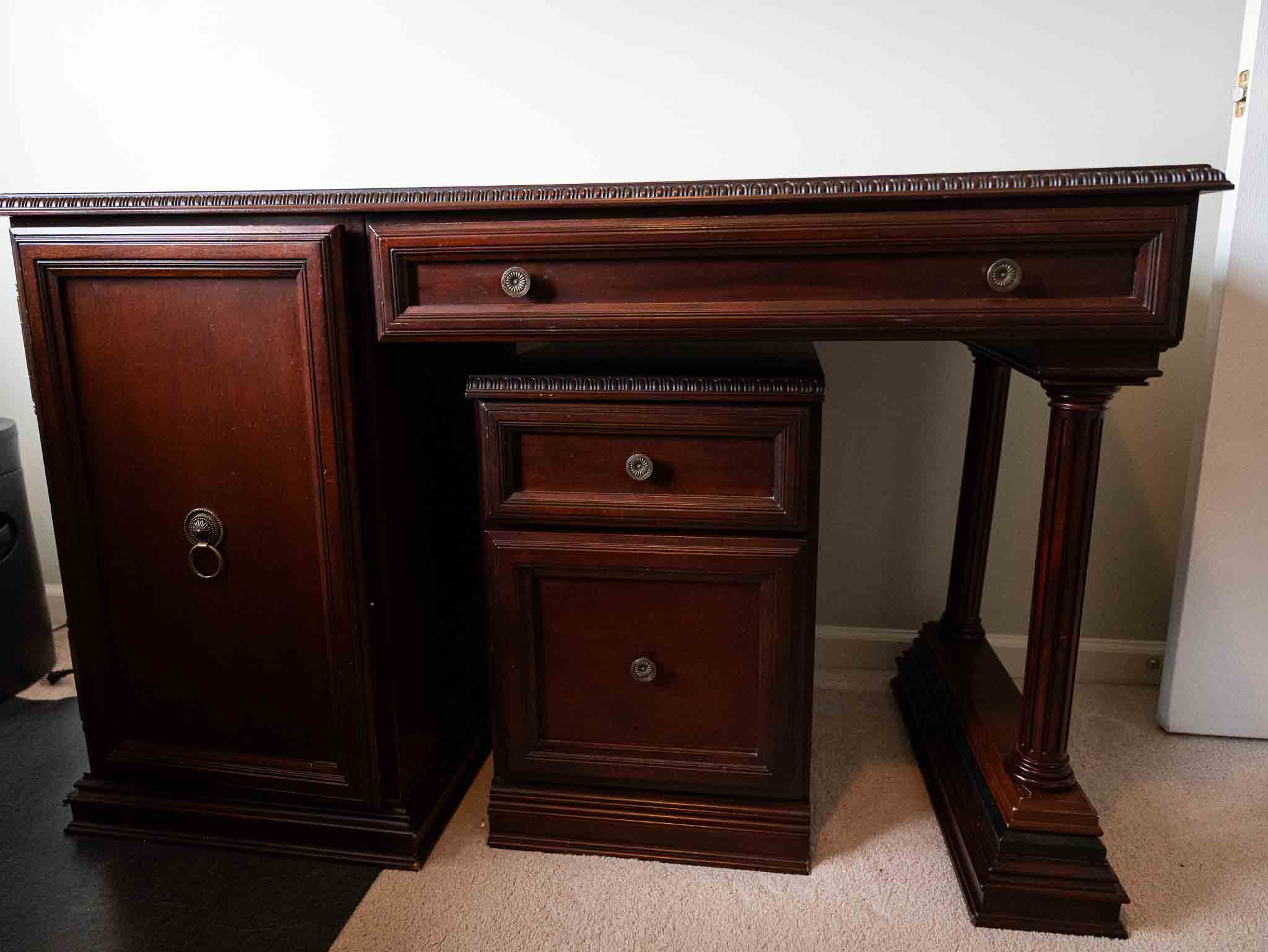 - Mahogany executive desk with matching cabinet