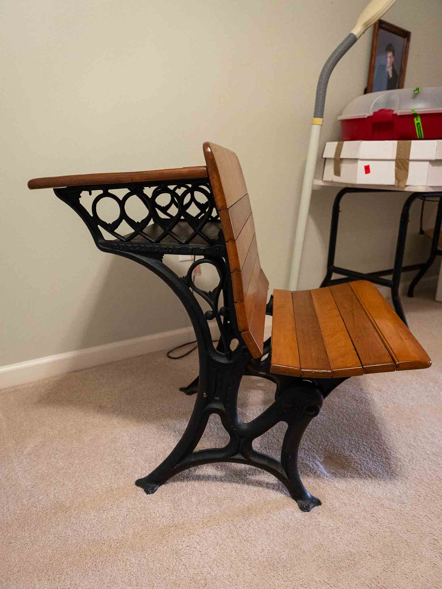 Vintage school desk with cast iron base