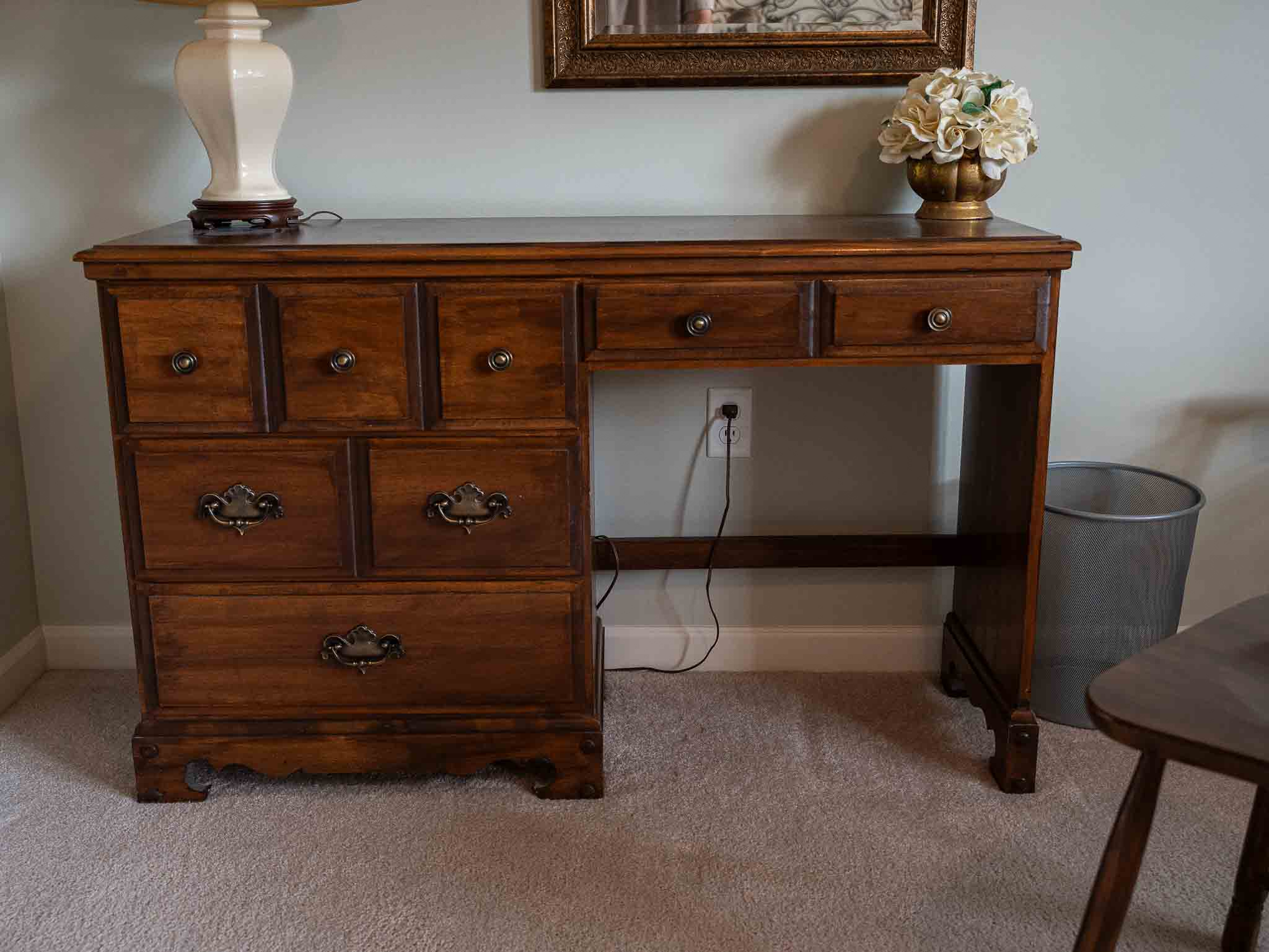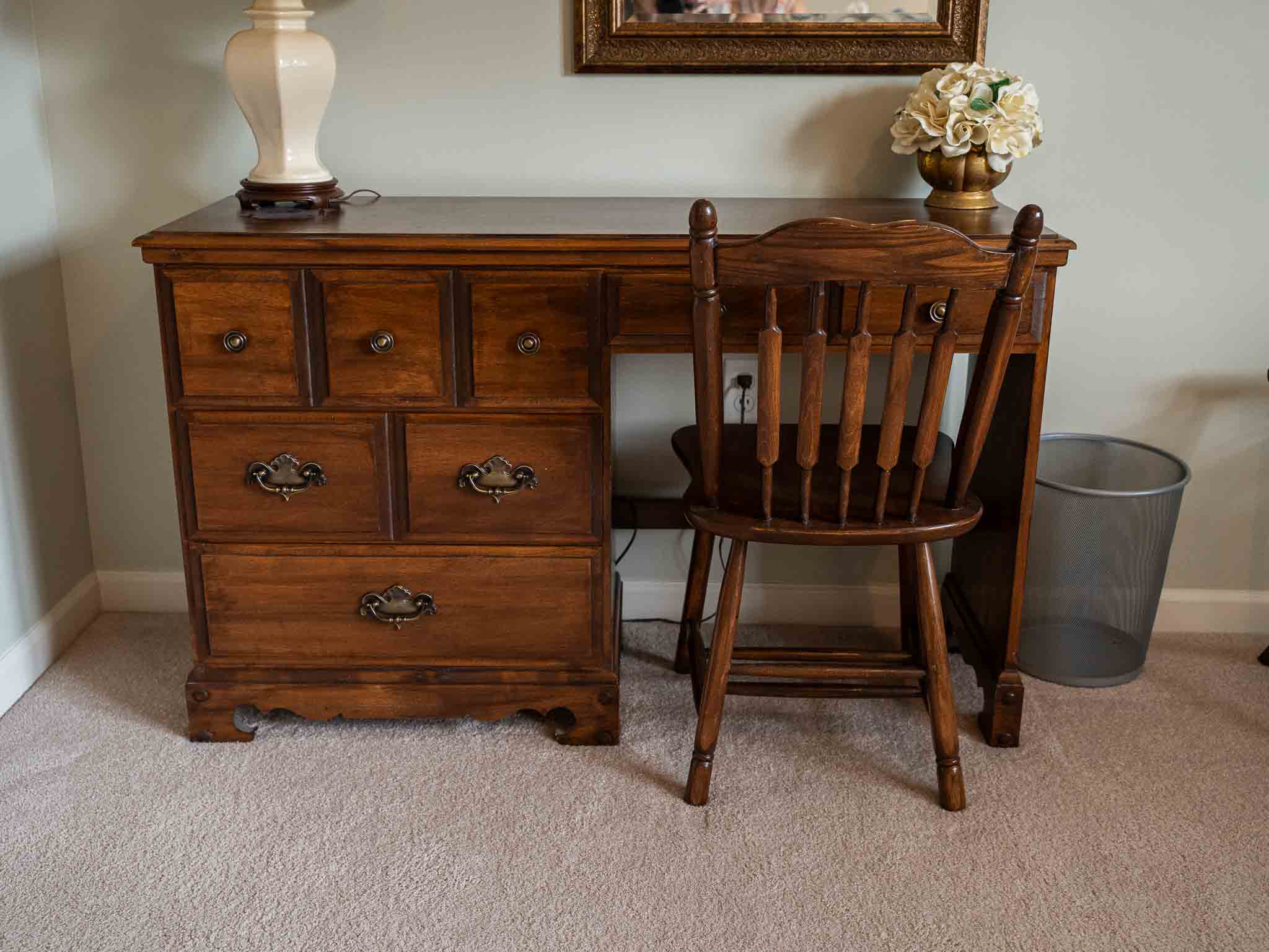 Solid wood desk with chair