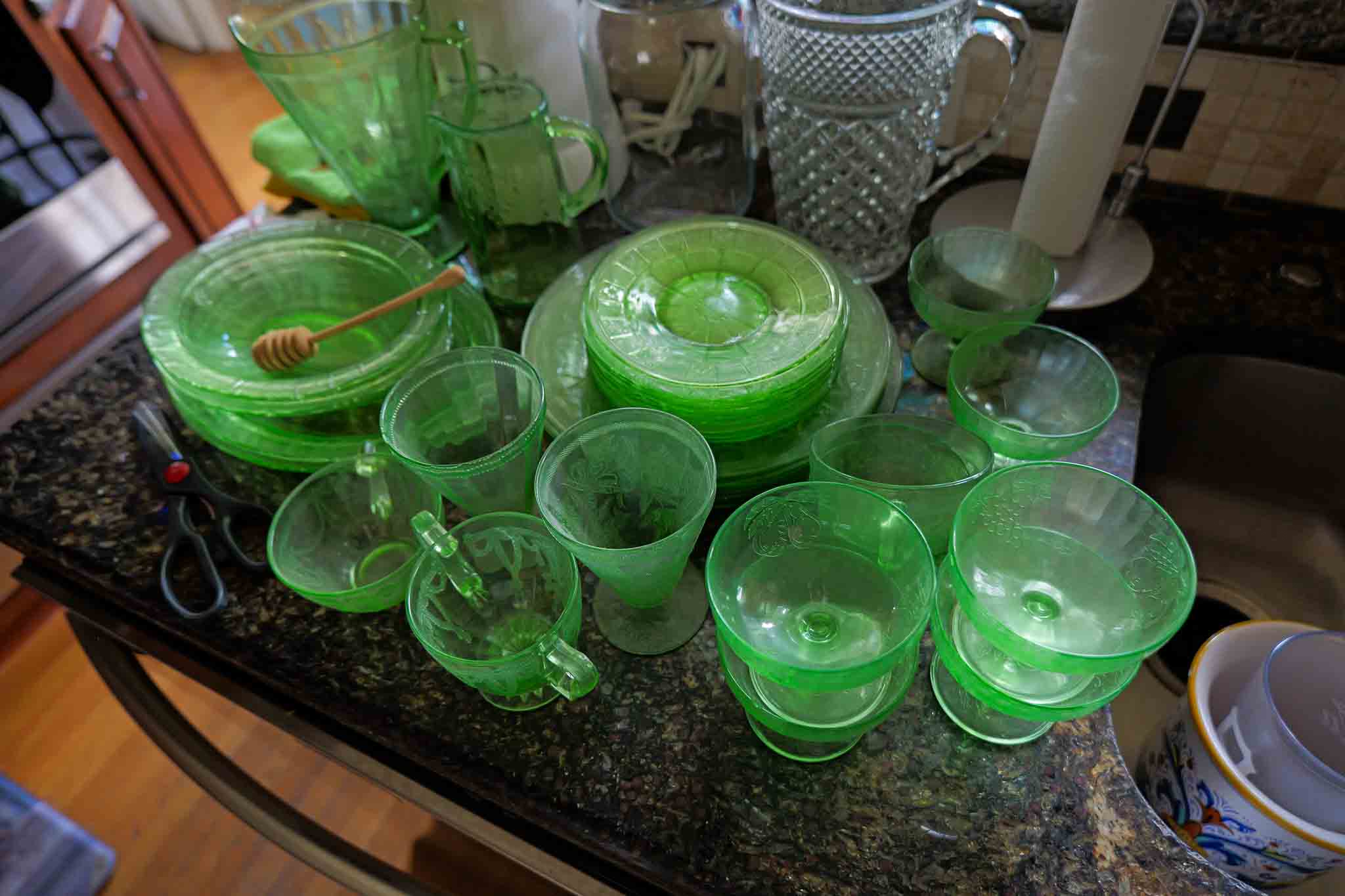 • Vintage Green Depression Glass (Uranium Style – Plates, Bowls, Cups)