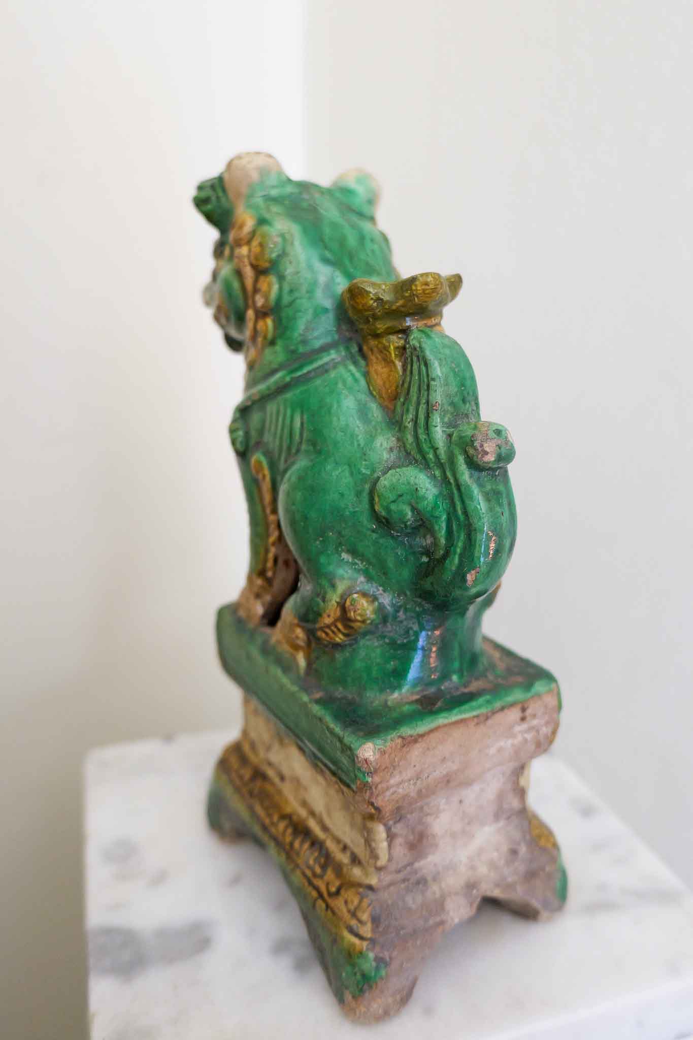 Chinese Green Glazed Foo Dog Guardian Lion Joss Stick Holder – Ceramic Incense Burner, 8.5”