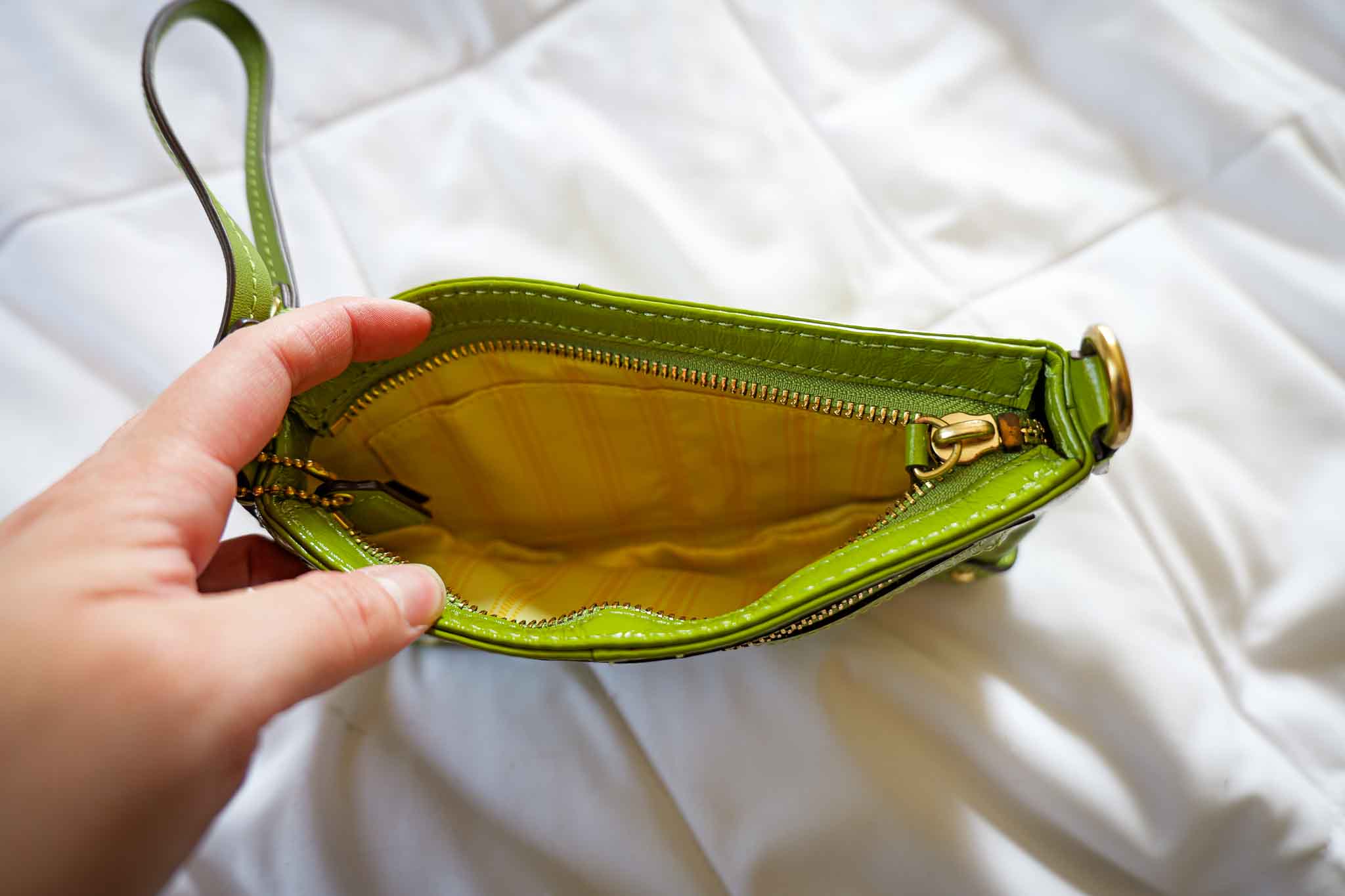 Interior is lined in a bright coordinating fabric and offers space for essentials like phone, cards, cash, and small items. A stylish Y2K-era accessory that adds a bold pop of color.