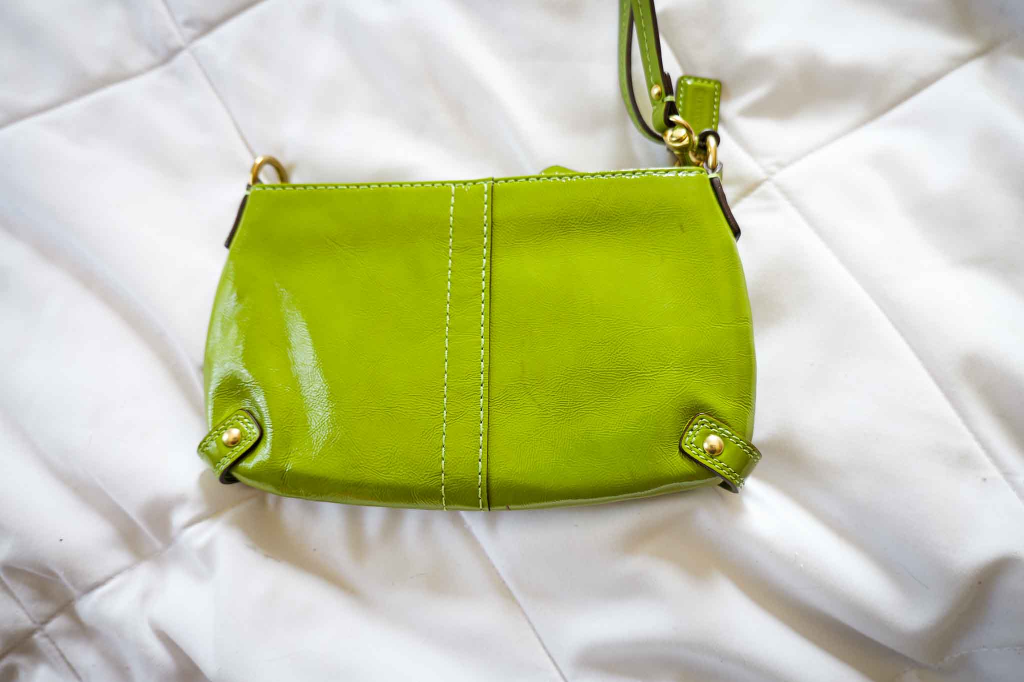 Coach Green Patent Leather Wristlet Clutch Lime Gloss Zip Top Gold Tone Hardware