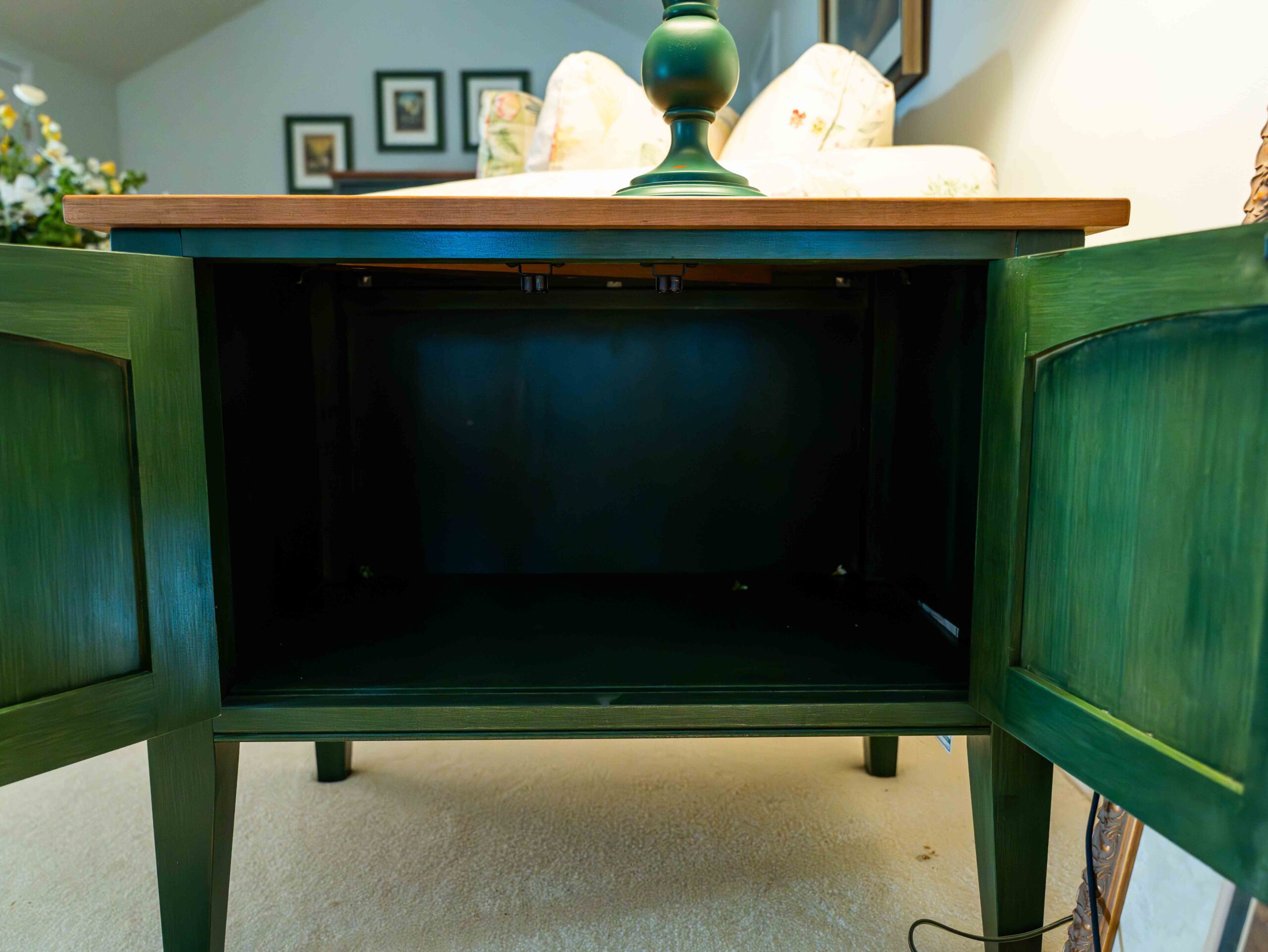 Ethan Allen Green Wooden End Table – Two-Door Storage