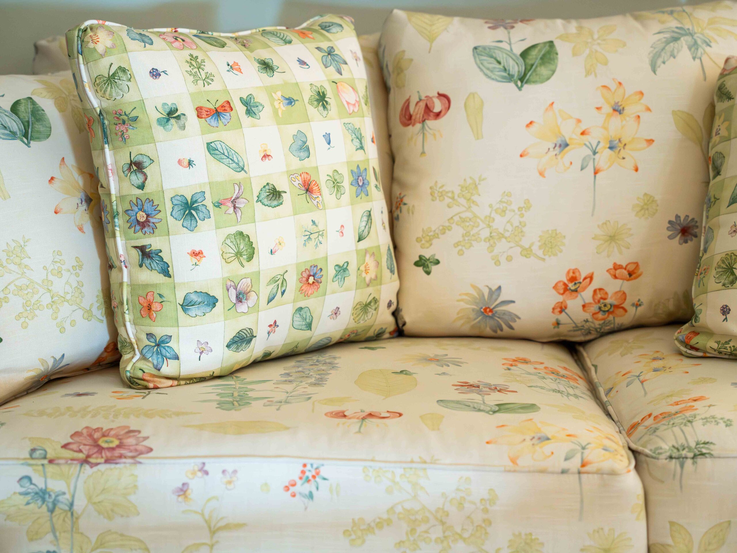 Ethan Allen Home Interiors Floral Sofa – 82” Wide, Two-Cushion Design