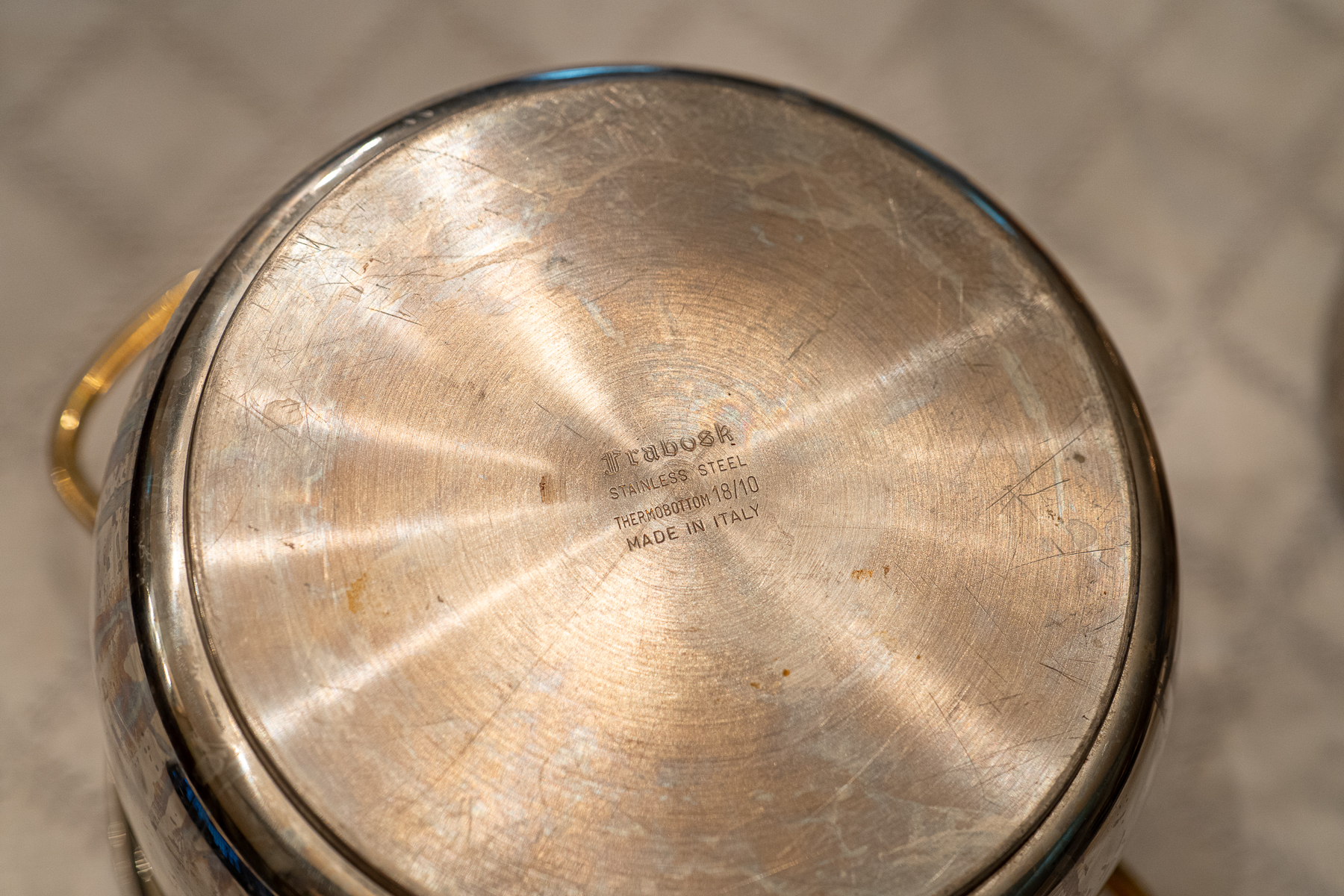 Frabosk Italy Stainless Steel Pan & Strainer Set with Lid – Gold Tone Handles