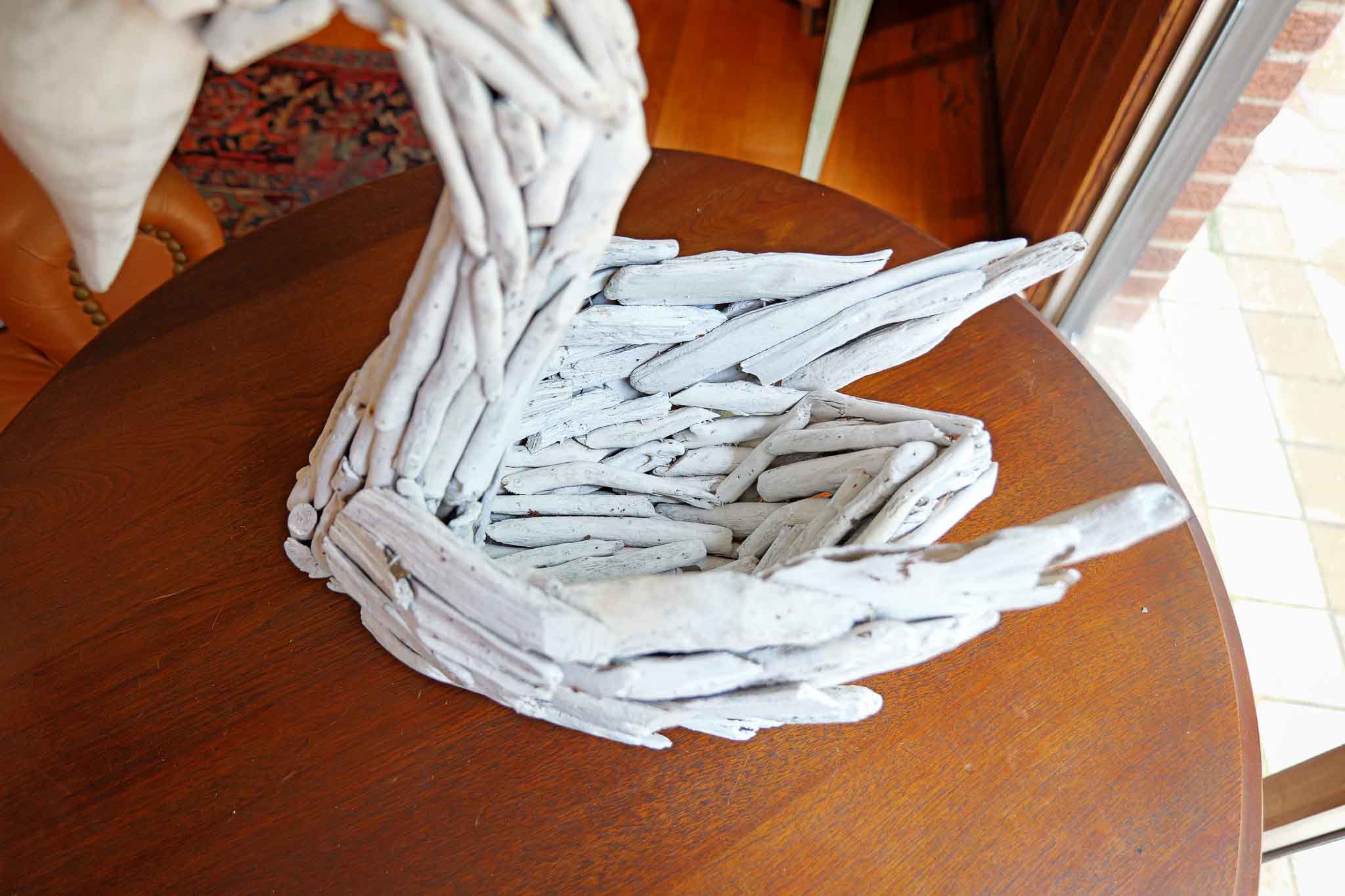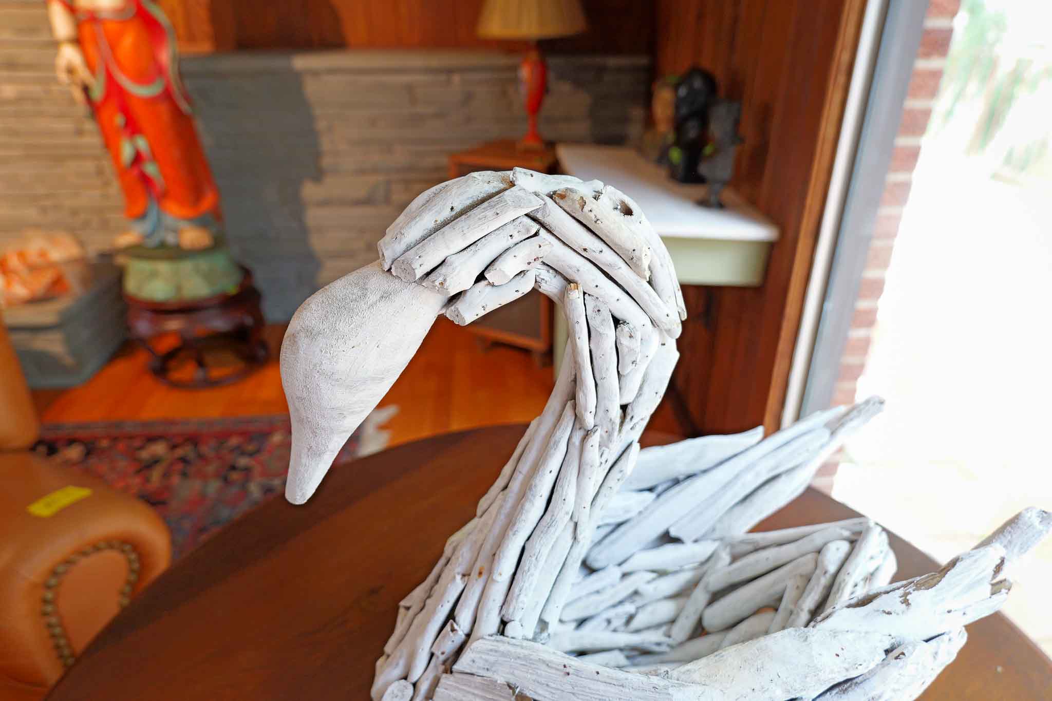HANDCRAFTED DRIFTWOOD STYLE SWAN SCULPTURE – LARGE 18” COASTAL DECOR