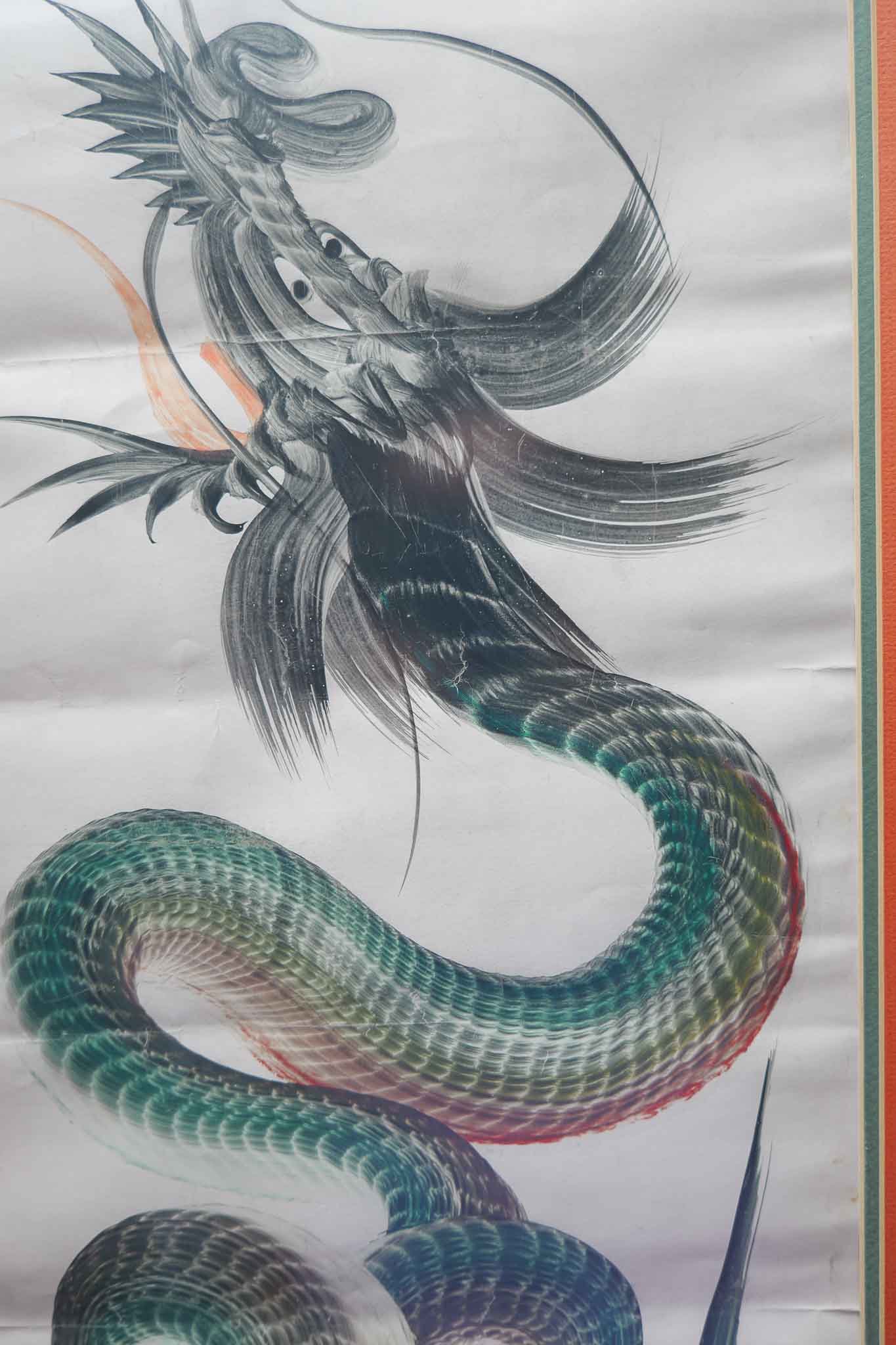 Japanese Ippitsuryu Sumi-e Dragon Painting Framed Scroll Art Signed 39” x 18.5”