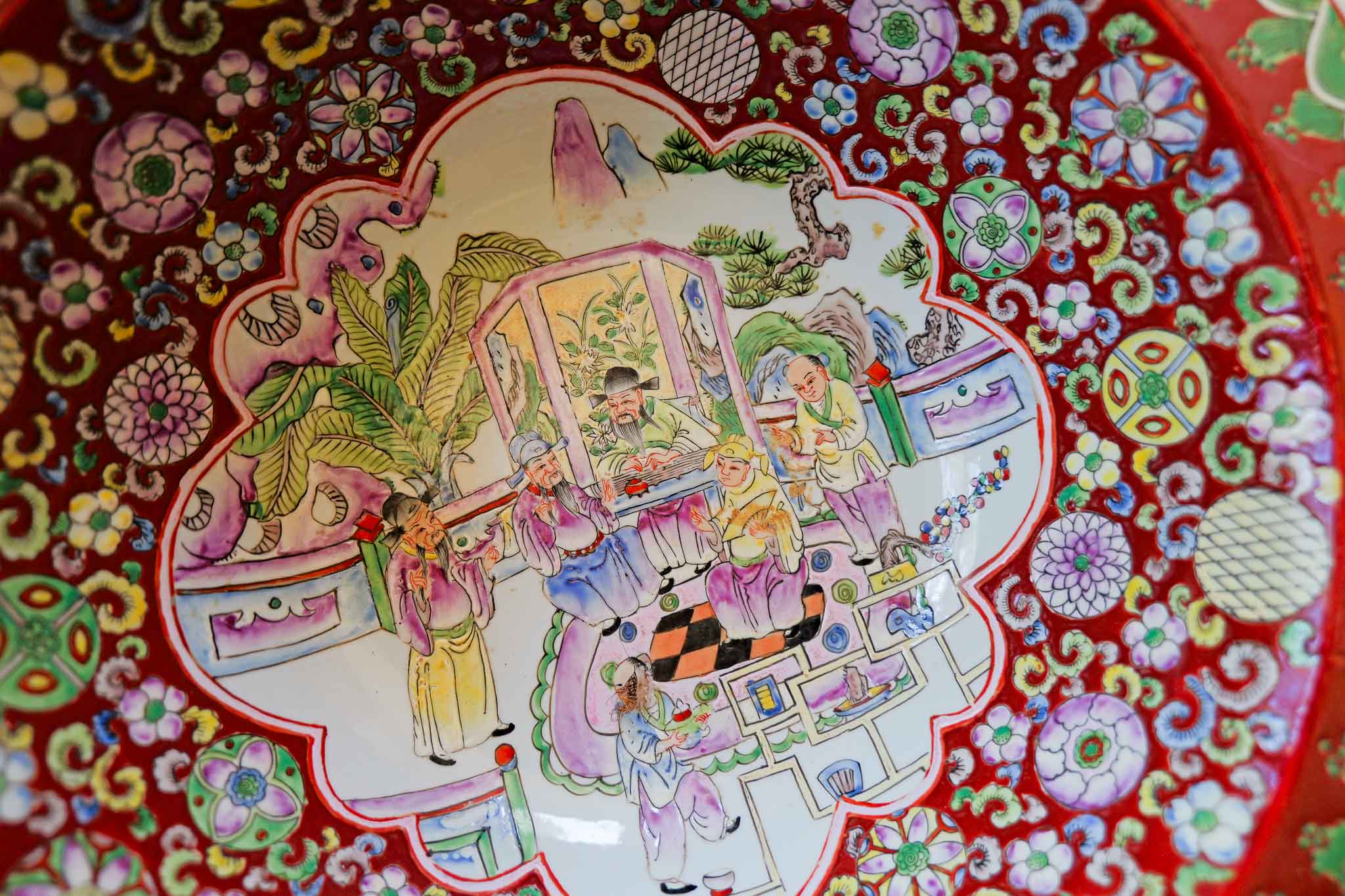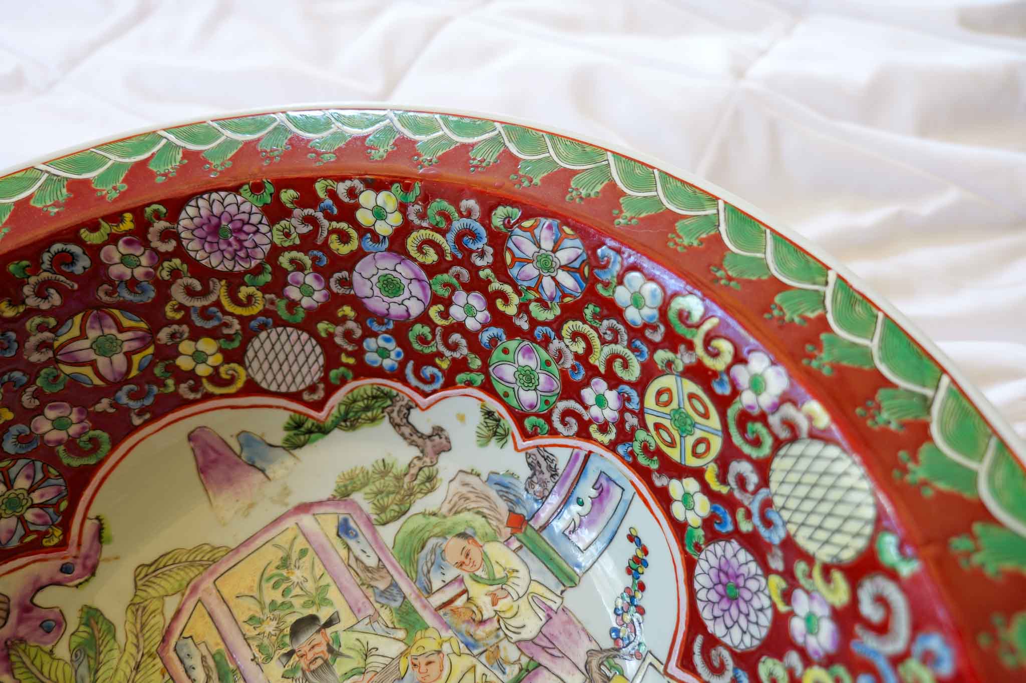 Large Chinese Famille Rose Porcelain Bowl – Figural Scene – 16.25” Diameter