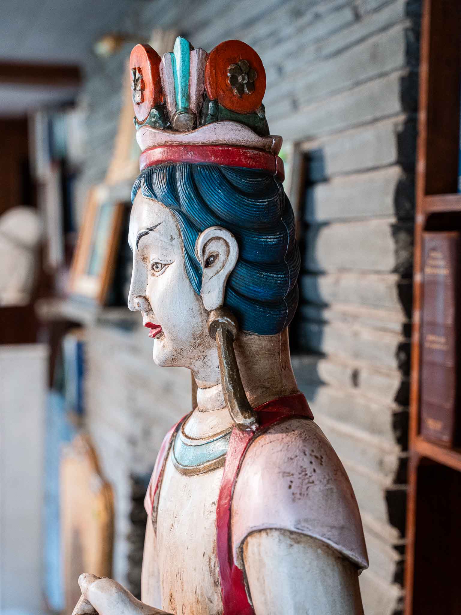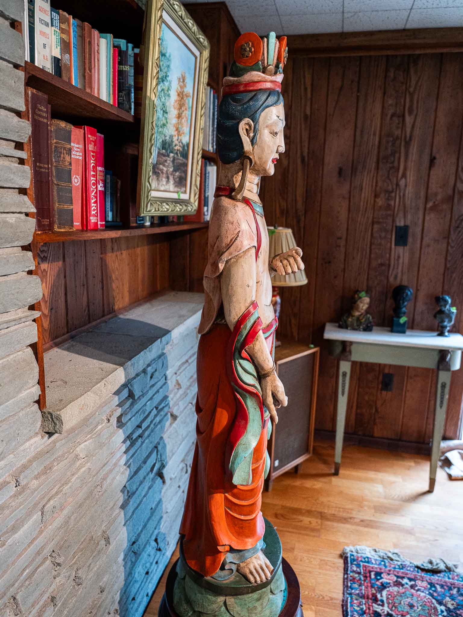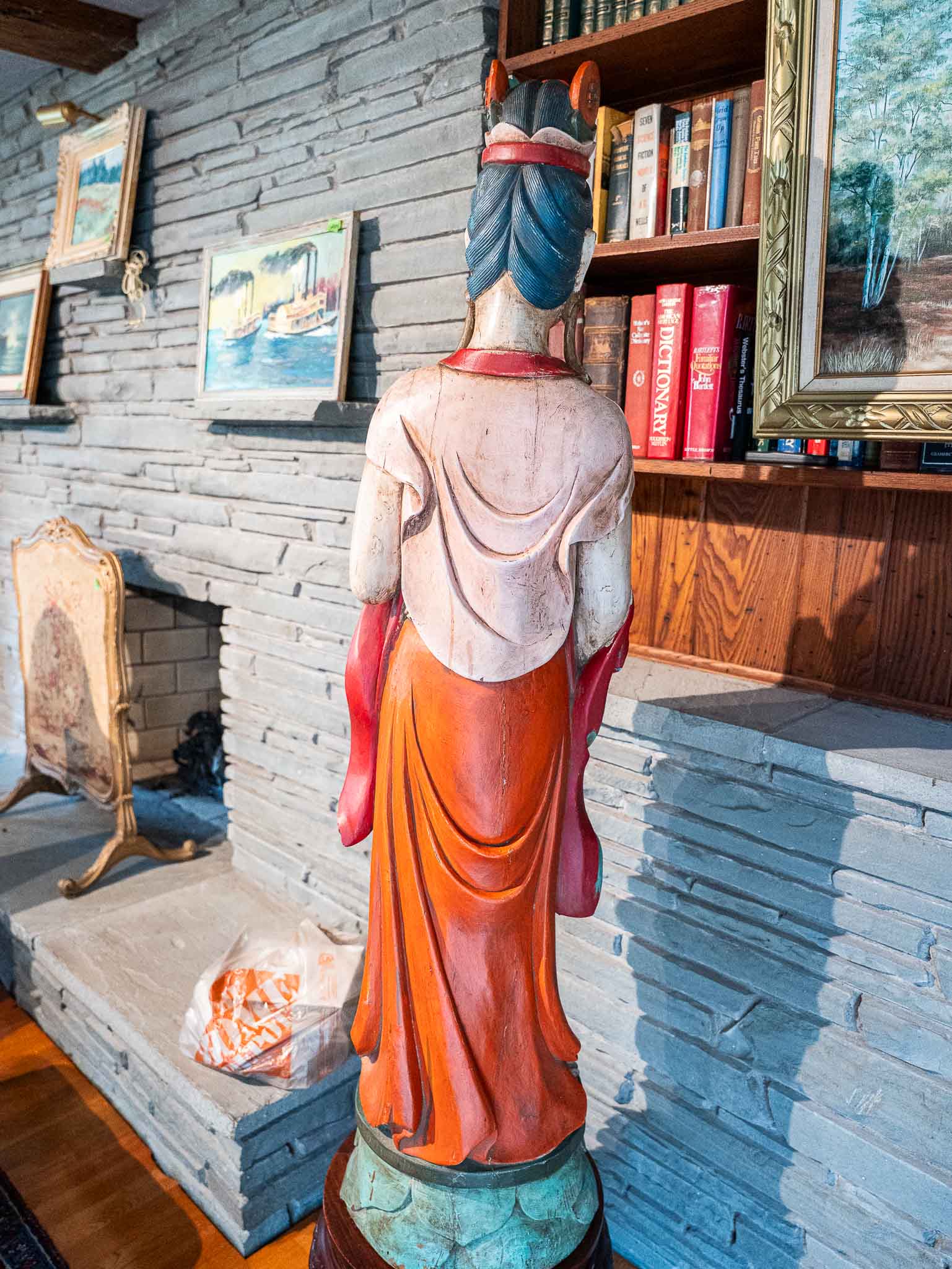 Large Hand-Carved Guanyin Wooden Sculpture – 59” Tall – Polychrome Asian Figure