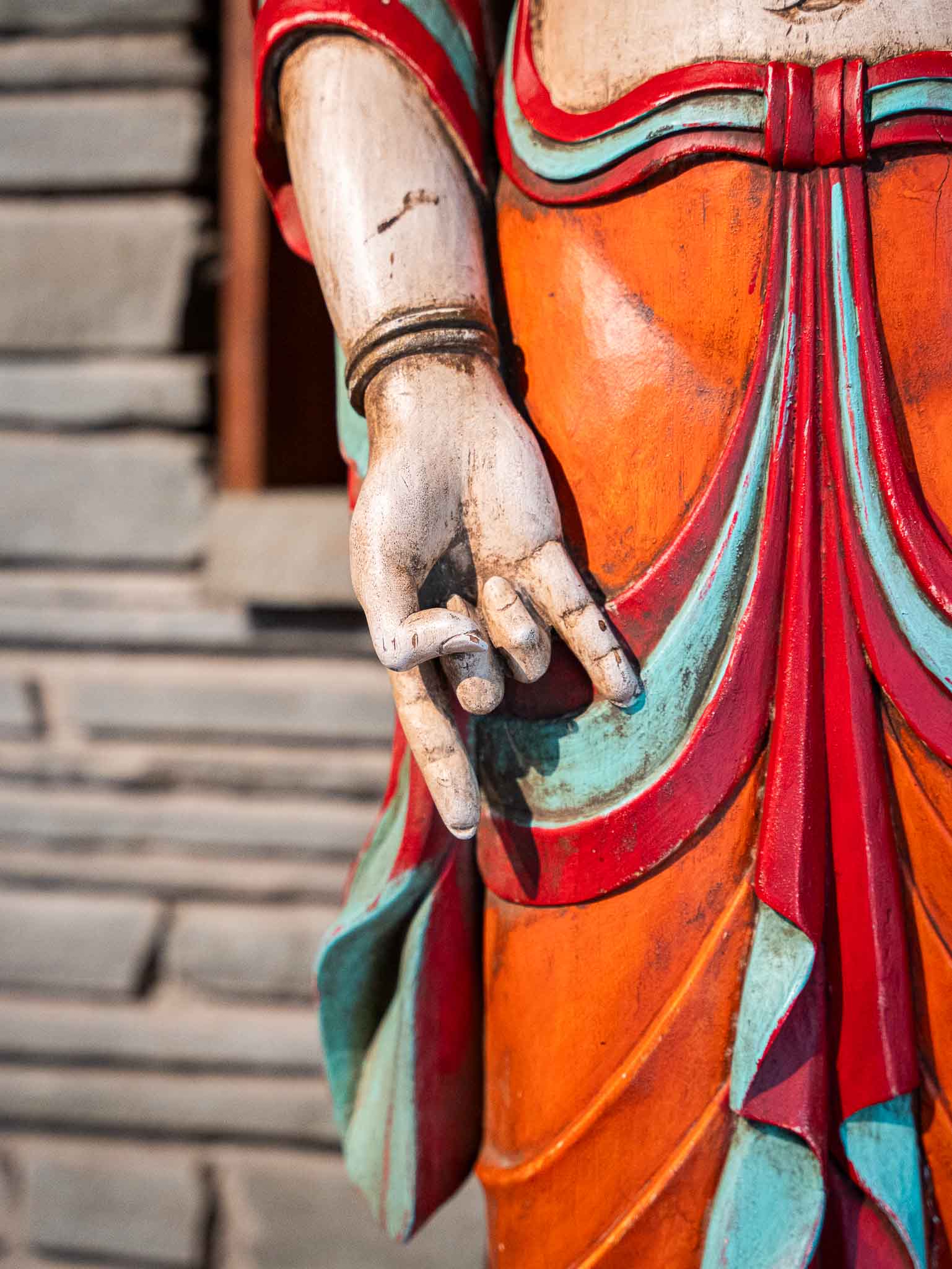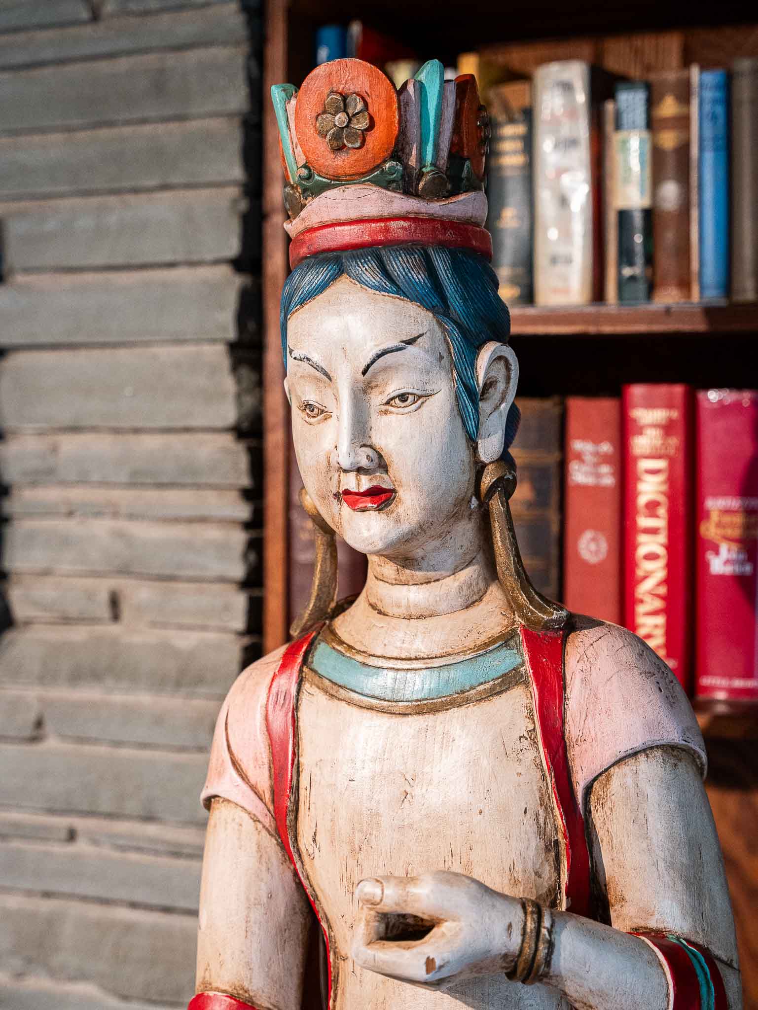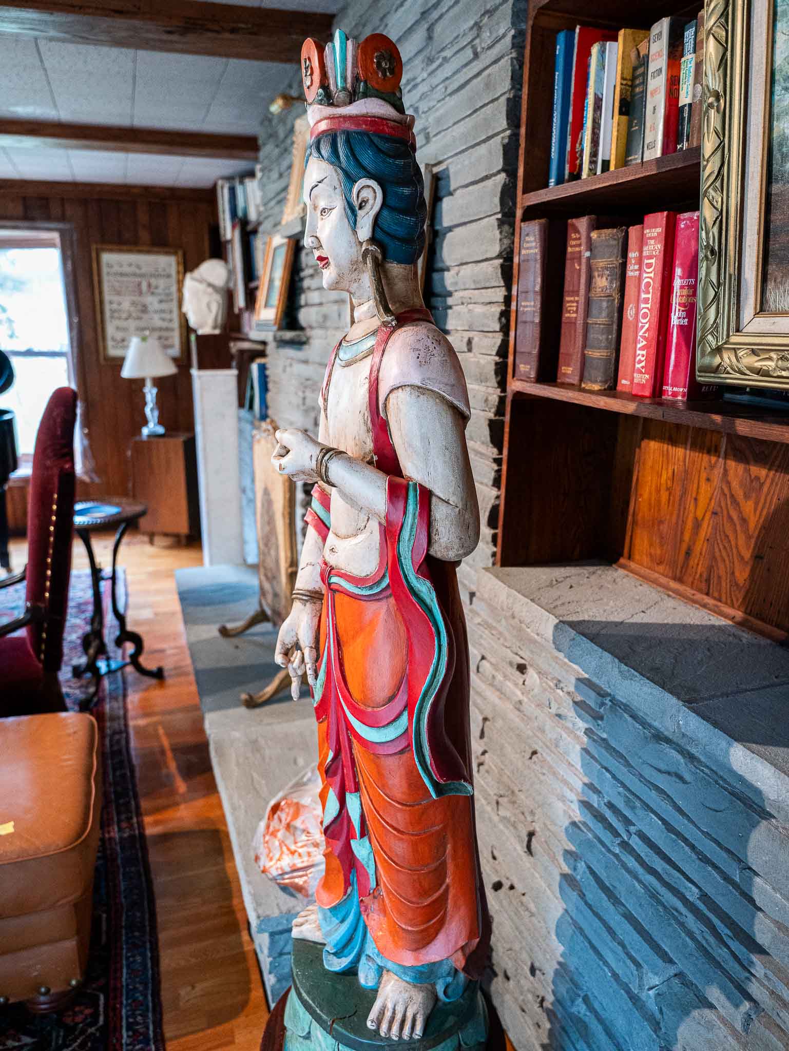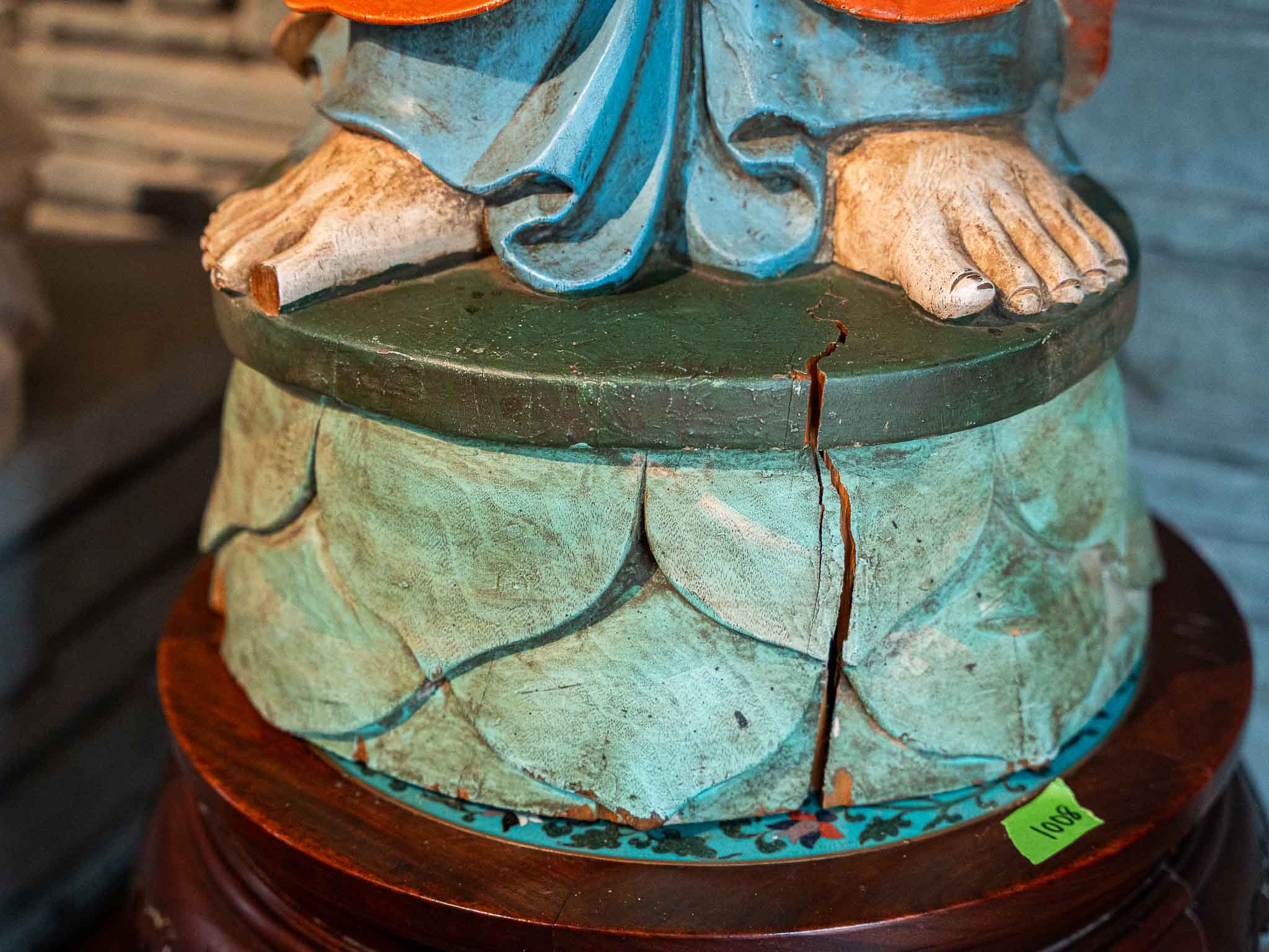 Large Hand-Carved Guanyin Wooden Sculpture – 59” Tall – Polychrome Asian Figure