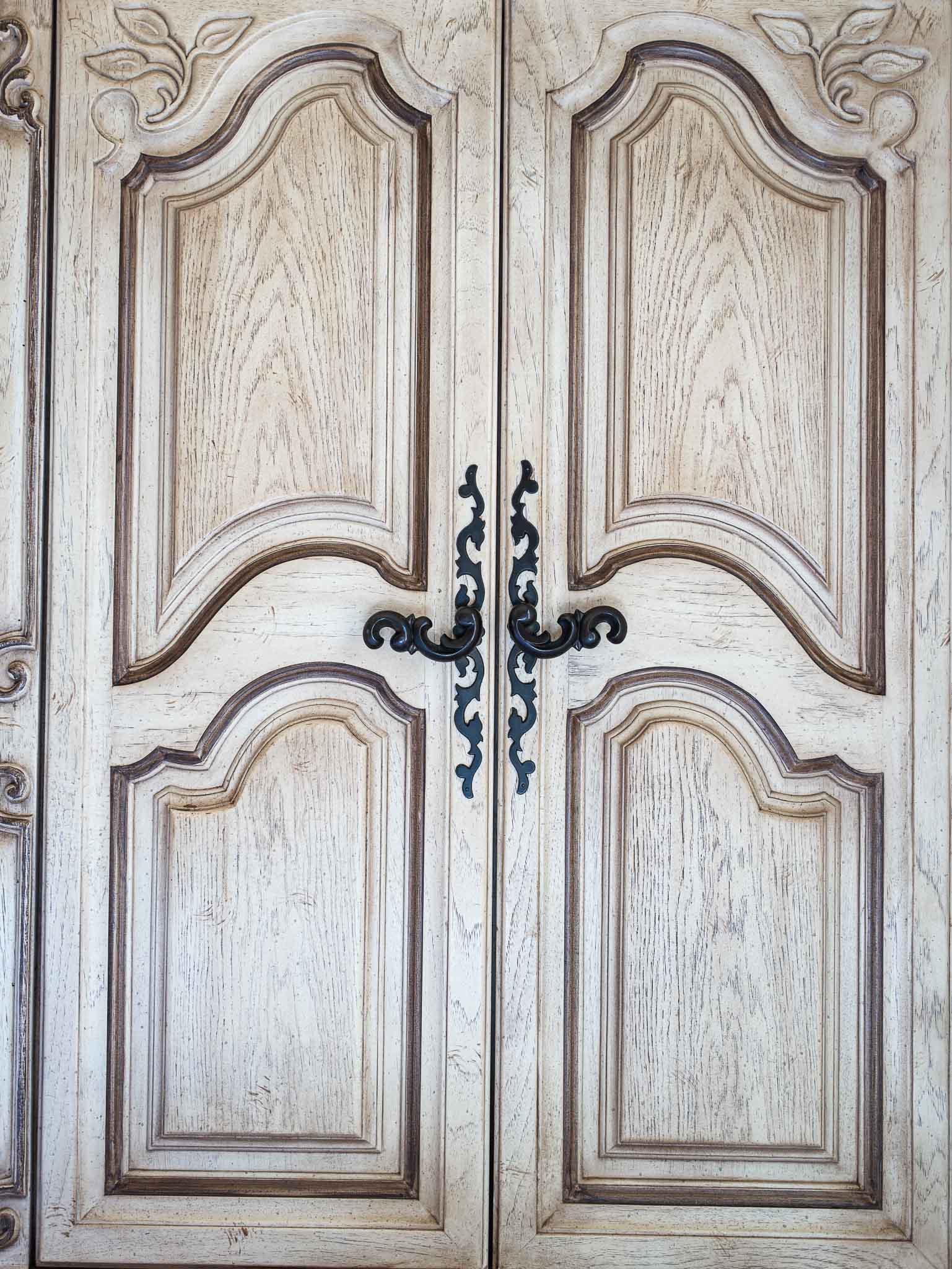 Light Wood Armoire / Wardrobe Dresser – Carved Detail