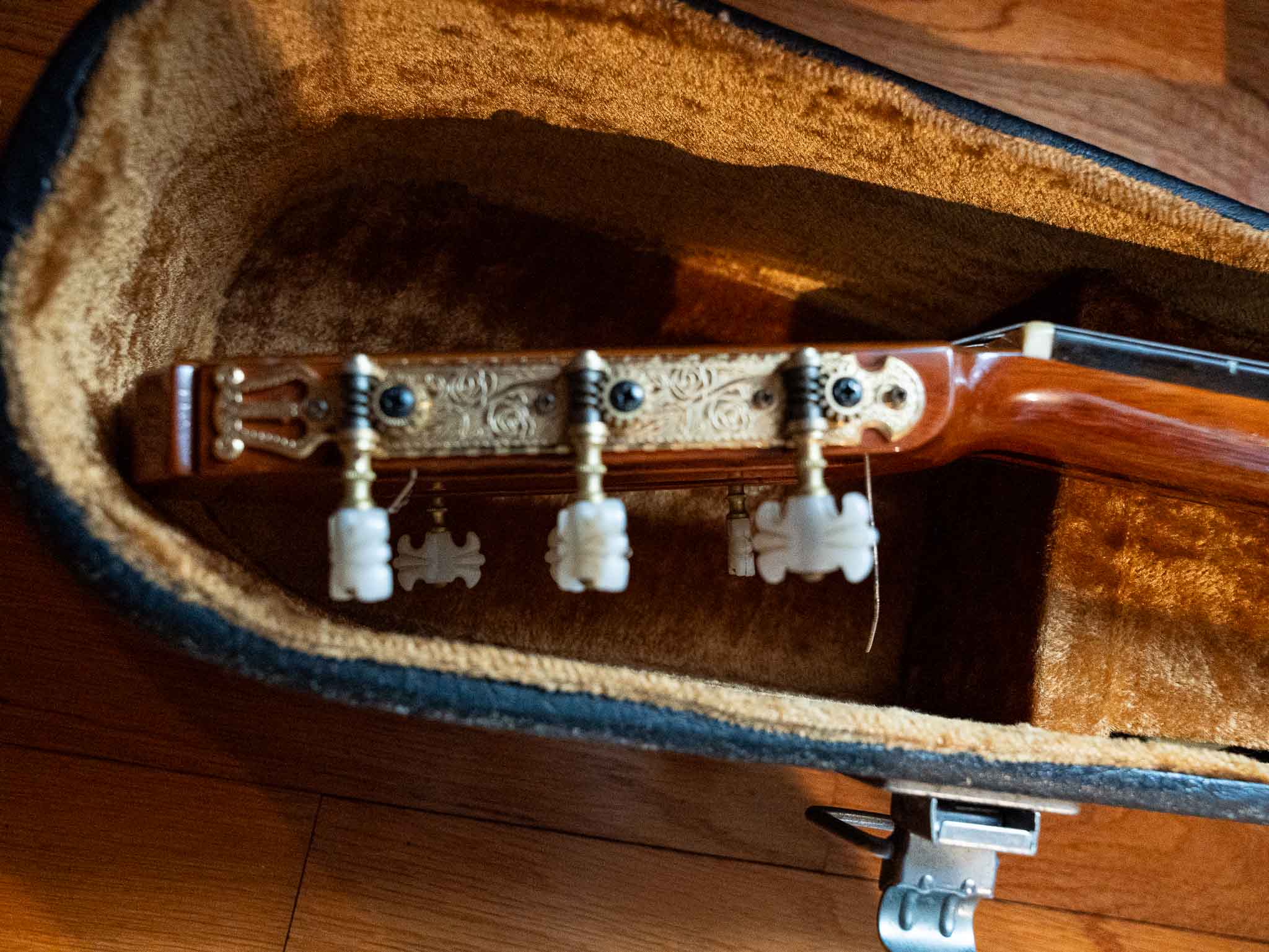 Very good vintage condition. Guitar shows light surface wear consistent with age, including minor marks on the back and body. No major structural issues visible. Case shows wear but remains fully functional. Overall presents very well.