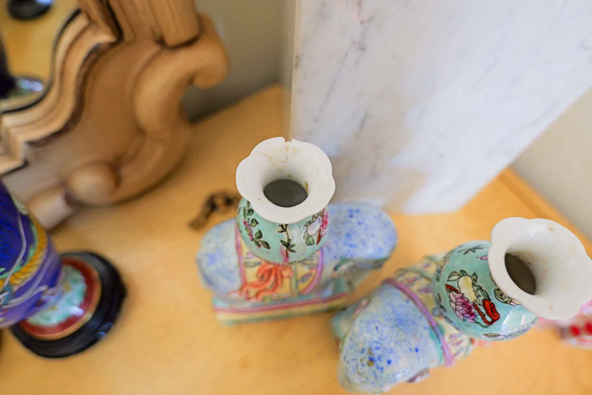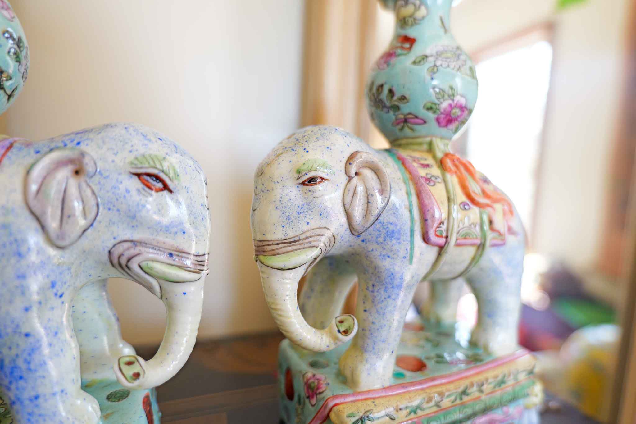 Pair of Chinese Famille Rose Elephant Candle Holders – Hand Painted Porcelain, 8”