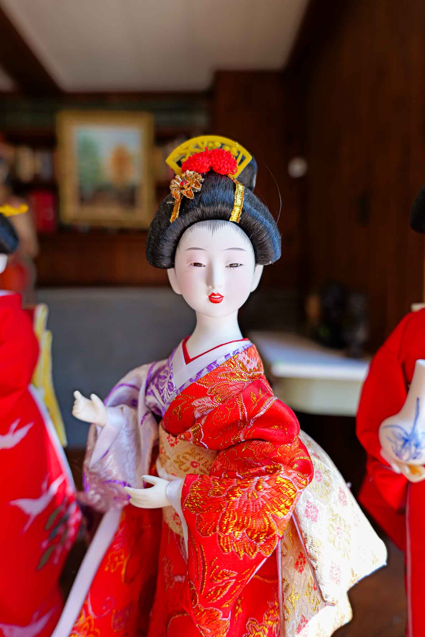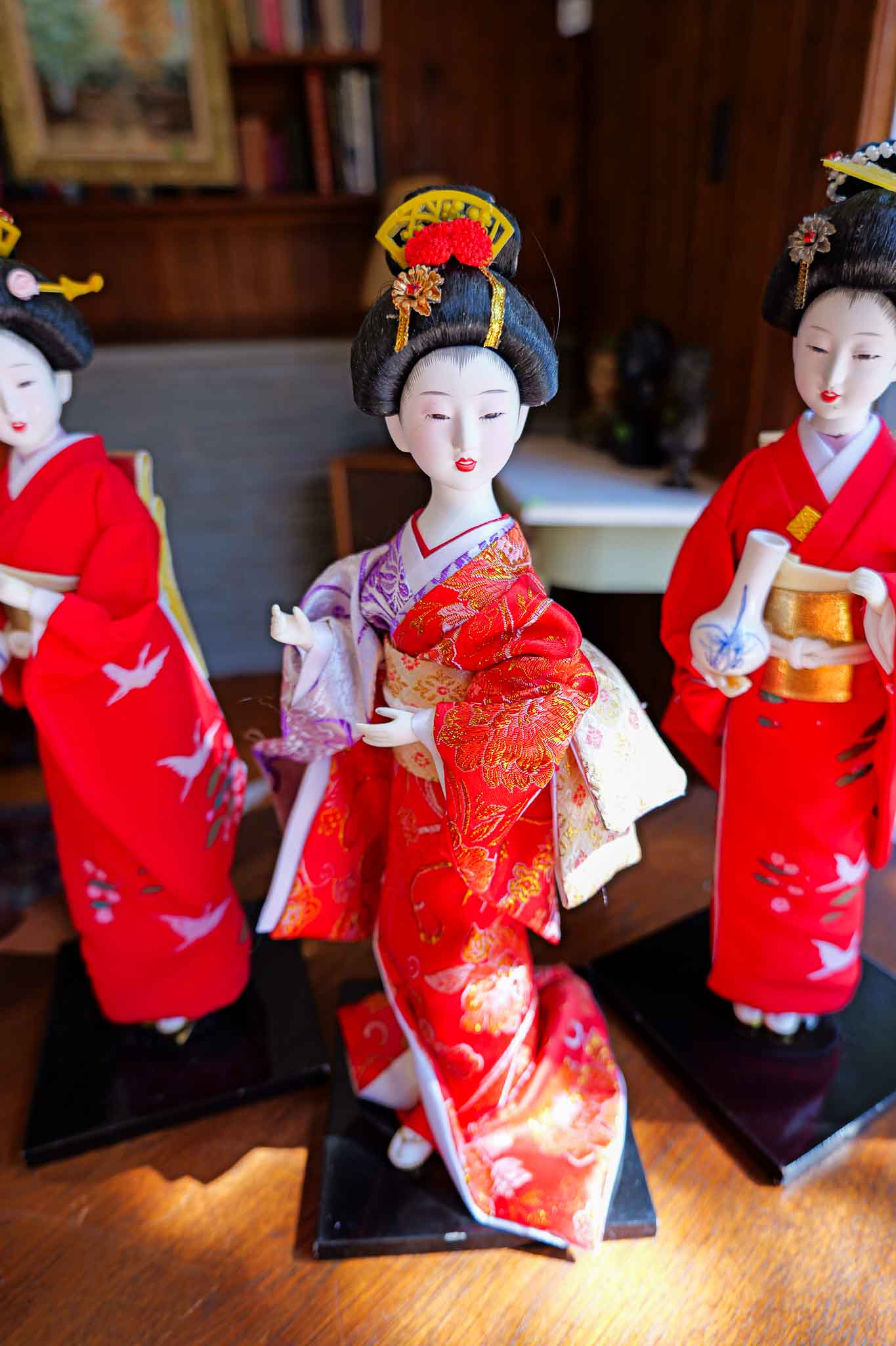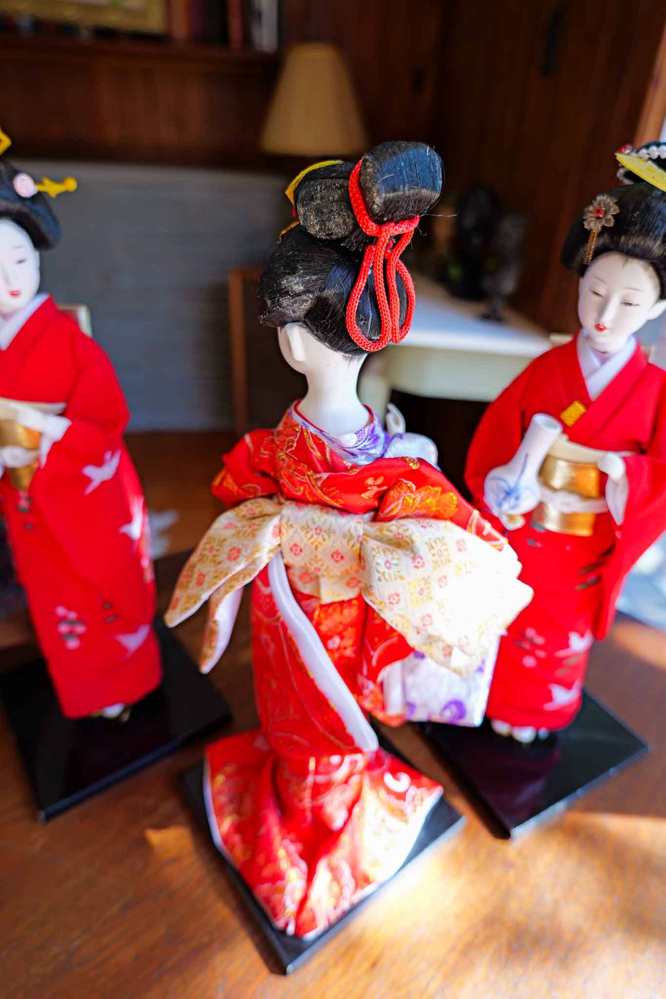 TRADITIONAL JAPANESE GEISHA STANDING DOLLS – RED KIMONO SET (3 PIECES)