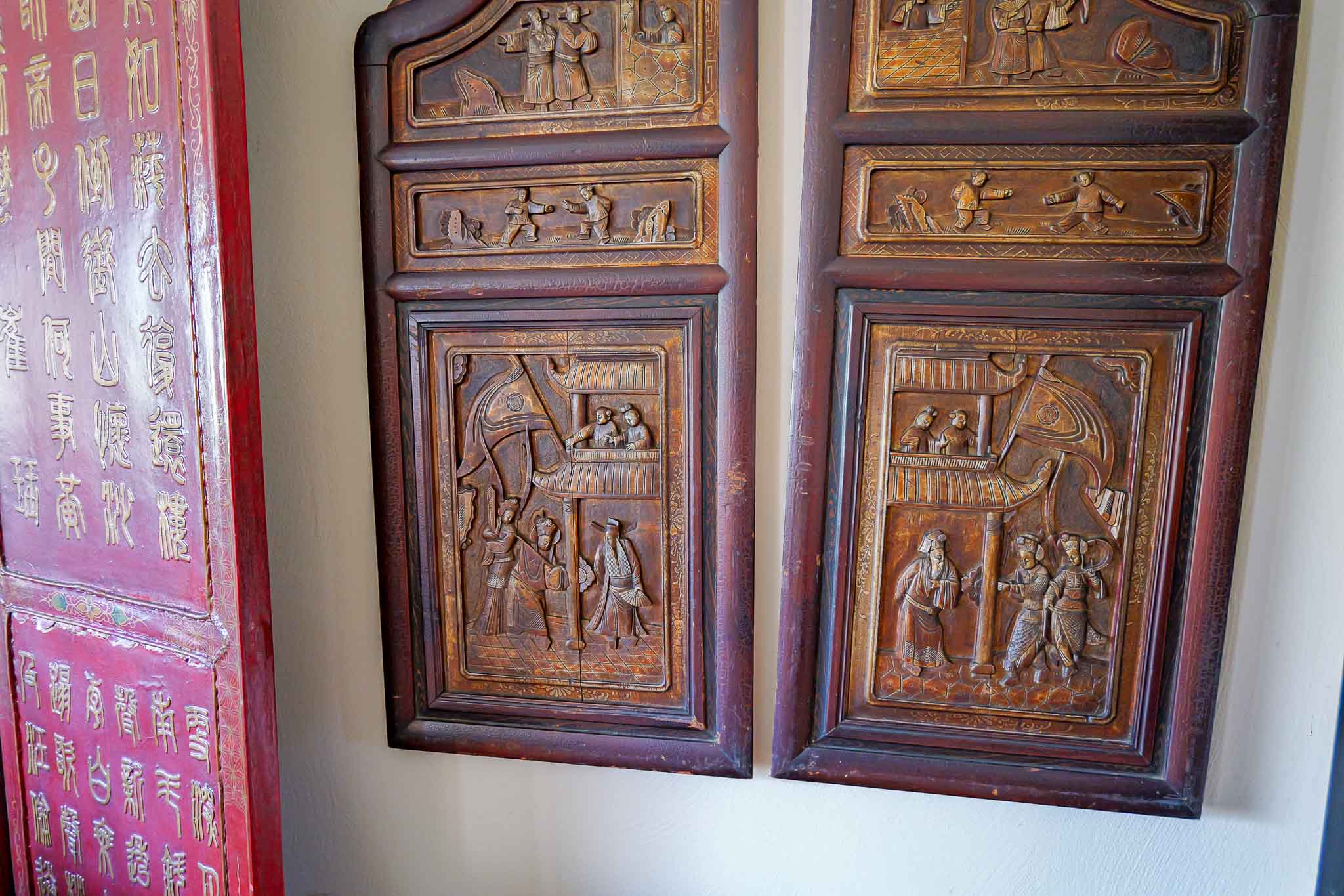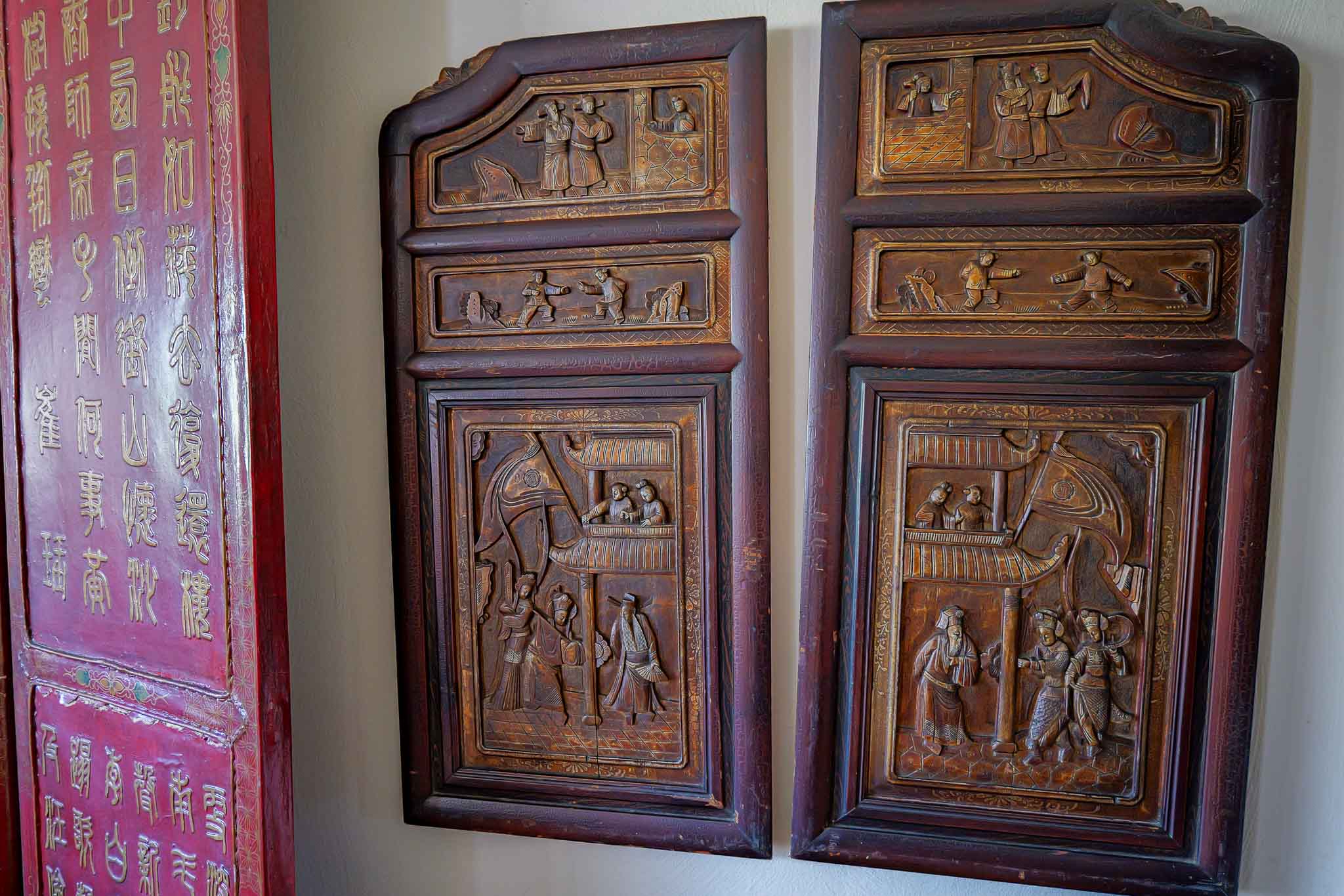 Vintage Chinese Hand-Carved Wood Wall Panels (Set of 2) – Figural Relief Scenes, 31”
