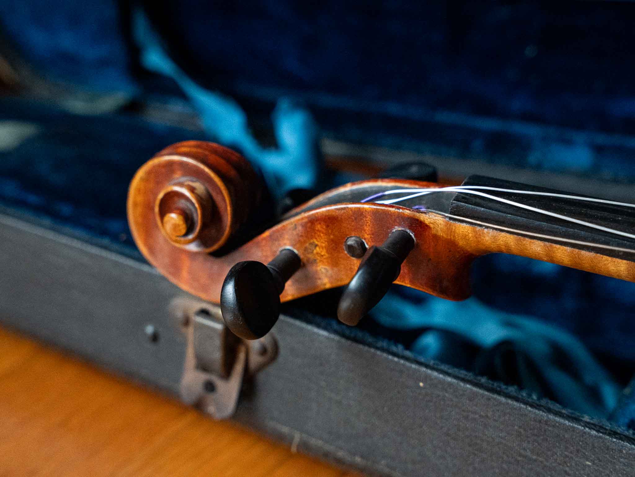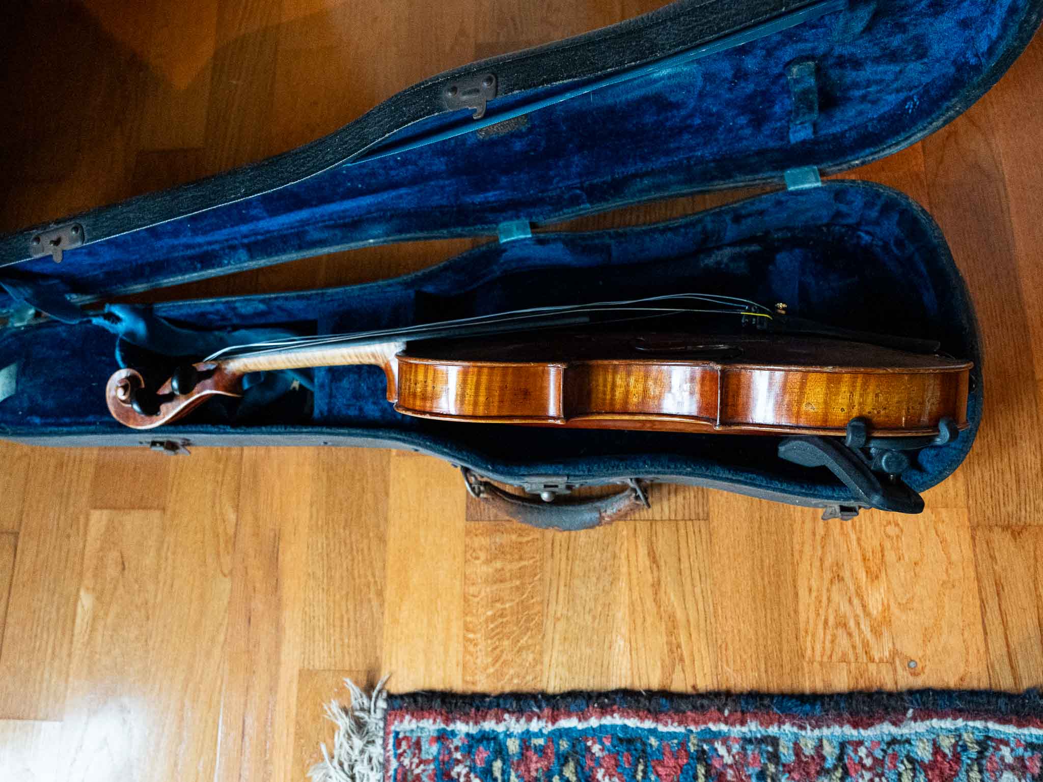 Includes original-style hard case with blue interior and multiple bows, making this a great complete setup for a player, student, or decorative display piece.
