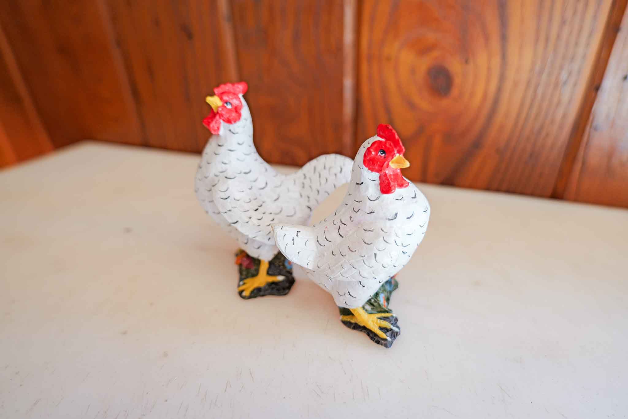 Vintage Plastic Rooster Figurines Set of 2 Farmhouse Kitchen Decor 4.5”