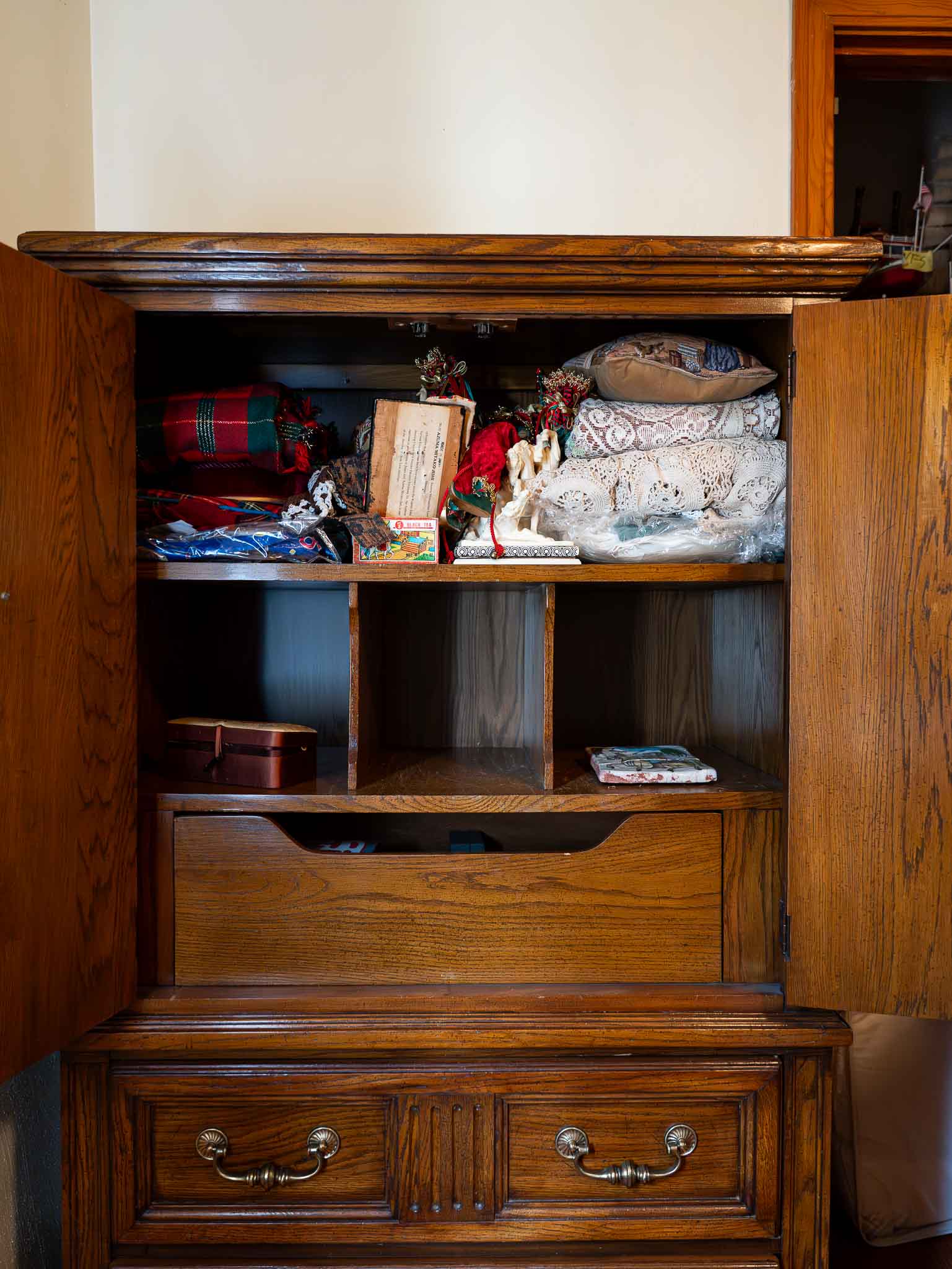 The warm tone and detailed woodwork make it a versatile addition to bedrooms, guest rooms, or even as extra storage in a living space.