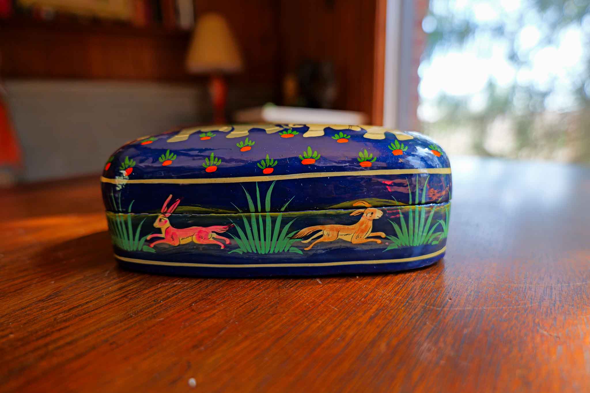 WOODEN HAND-PAINTED TRINKET BOX – ELEPHANT PROCESSION SCENE